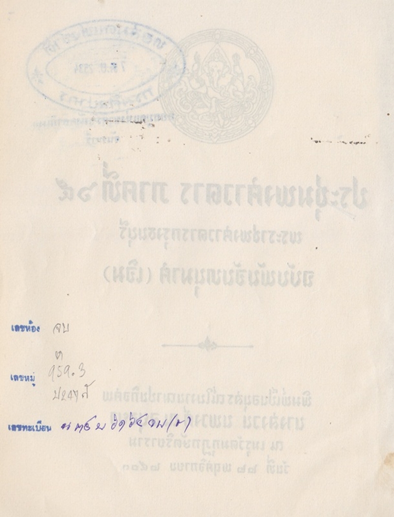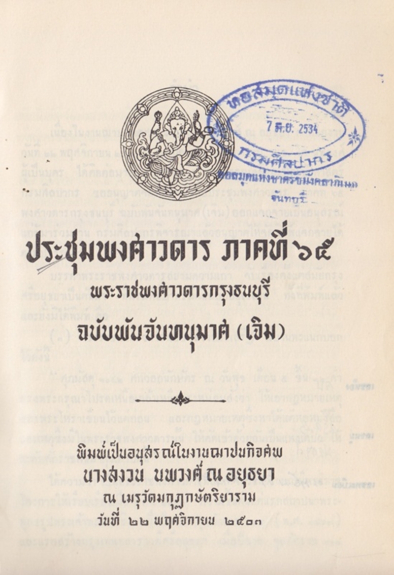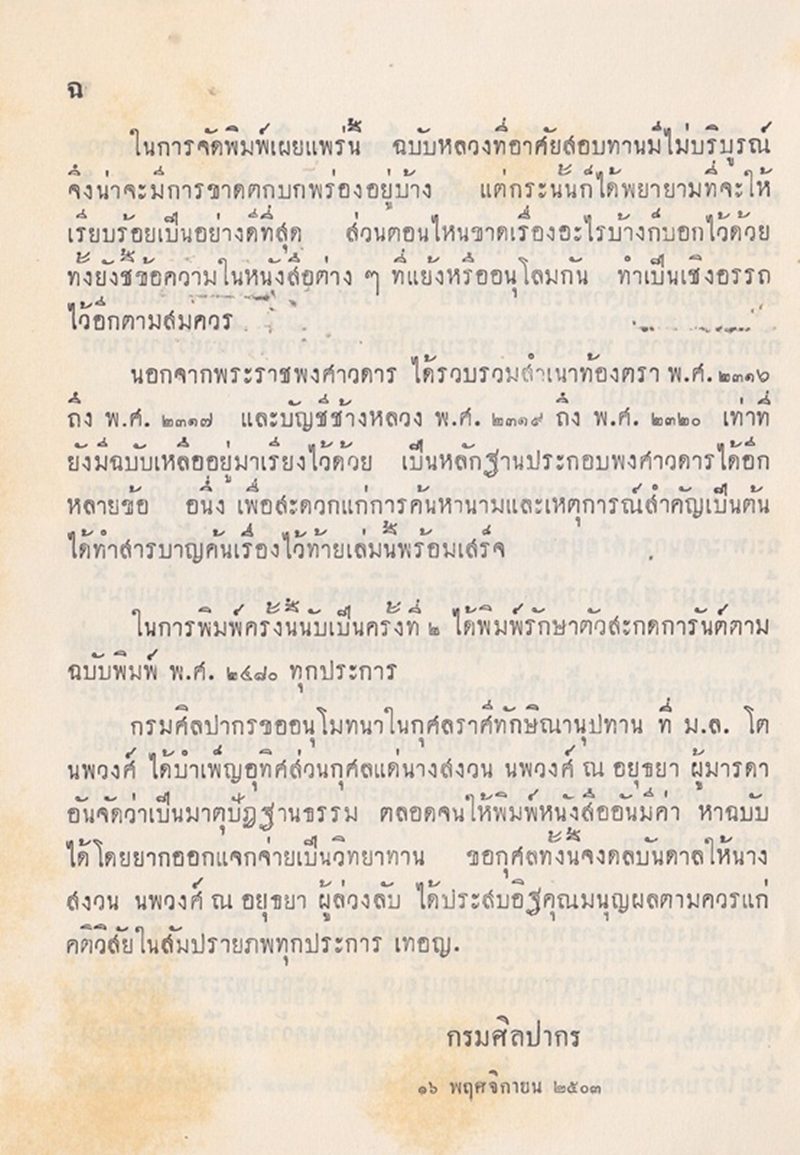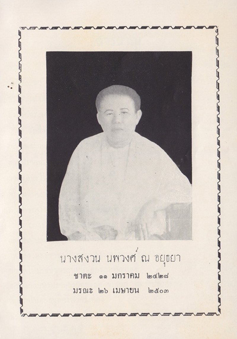- พิมพ์เป็นอนุสรณ์ในงานฌาปนกิจศพ นางสงวน นพวงศ์ ณ อยุธยา วันที่ 22 พฤศจิกายน 2503