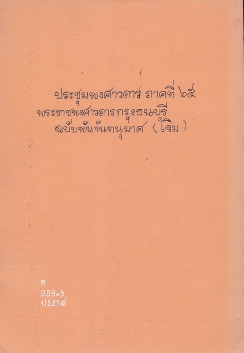 - ประชุมพงศาวดาร ภาคที่ 65 พระราชพงศาวดารกรุงธนบุรี ฉบับพันจันทนุมาศ (เจิม)