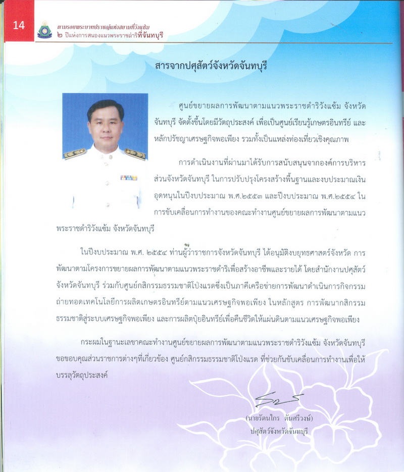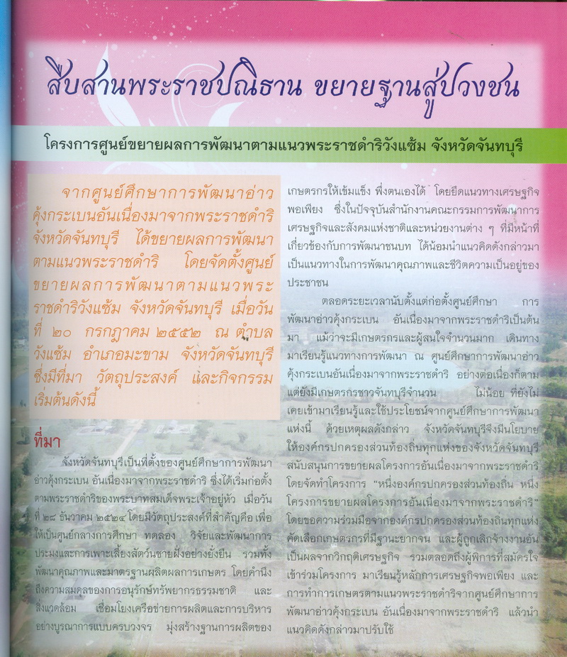 ศูนย์ขยายผลการพัฒนาตามแนวพระราชดำริฯวังแซ้ม, “ตามรอยพระบาทปราชญ์แห่งสยามที่วังแซ้ม,” D-Library | National Library of Thailand, accessed April 2, 2026, http://164.115.27.97/digital2024/items/show/4870.