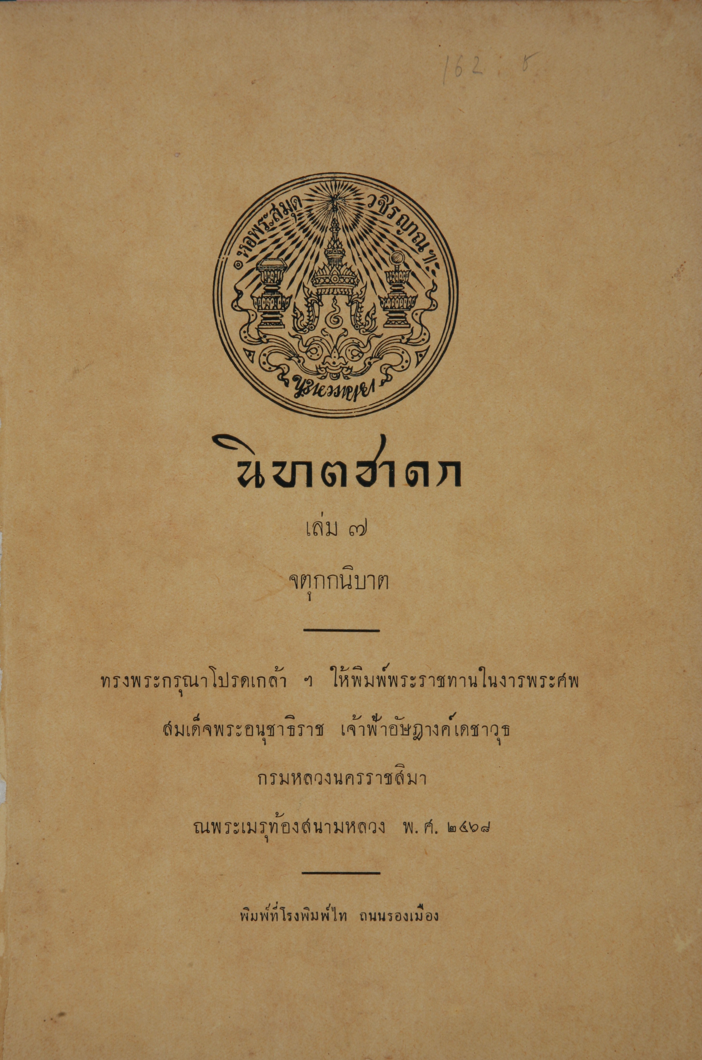 - พระบาทสมเด็จพระมุงกุฏเกล้าเจ้าอยู่หัวทรงพระกรุณาโปรดเกล้าฯ ให้พิมพ์พระราชทานในงารพระศพสมเด็จพระอนุชาธิราช เจ้าฟ้าอัษฎางค์เดชาวุธ กรมหลวงนครราชสีมา