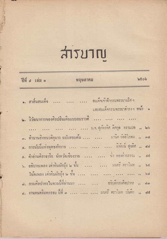 “วารสารศิลปากร ปีที่7 เล่ม1 พ.ค. 2506,” D-Library | National Library of Thailand, accessed April 2, 2026, http://164.115.27.97/digital2024/items/show/4909.