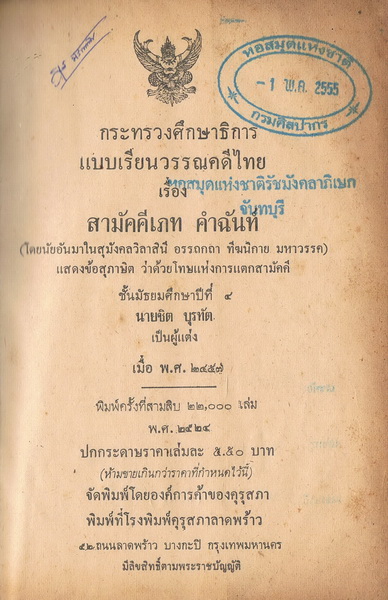 ชิต บุรทัต, “แบบเรียนวรรณคดีไทย เรื่อง สามัคคีเภทคำฉันท์,” D-Library | National Library of Thailand, accessed April 2, 2026, http://164.115.27.97/digital2024/items/show/5081.