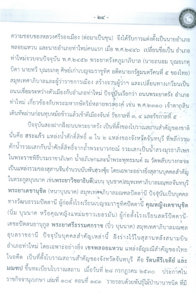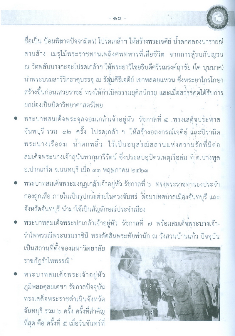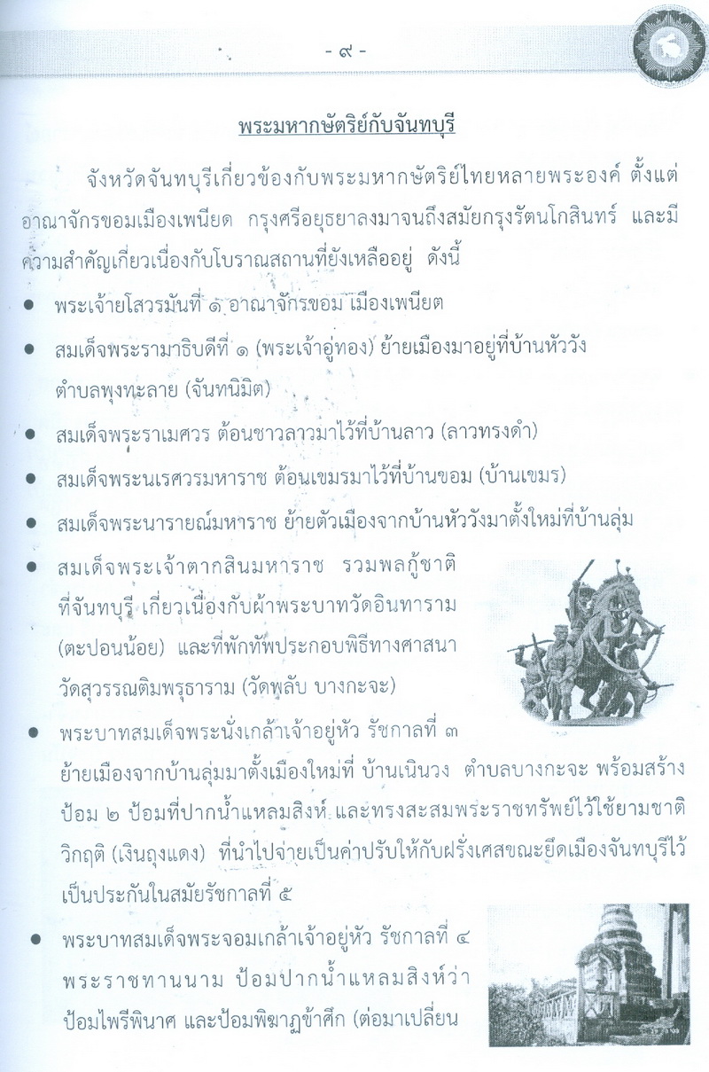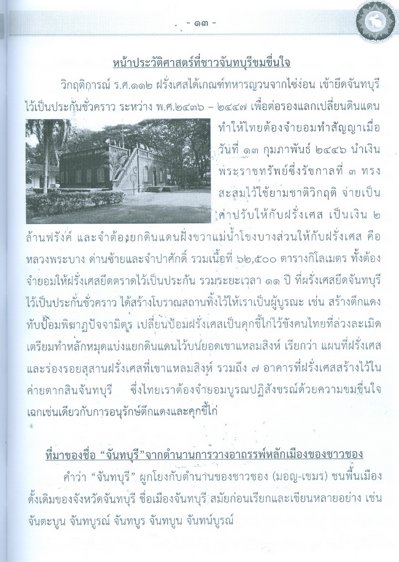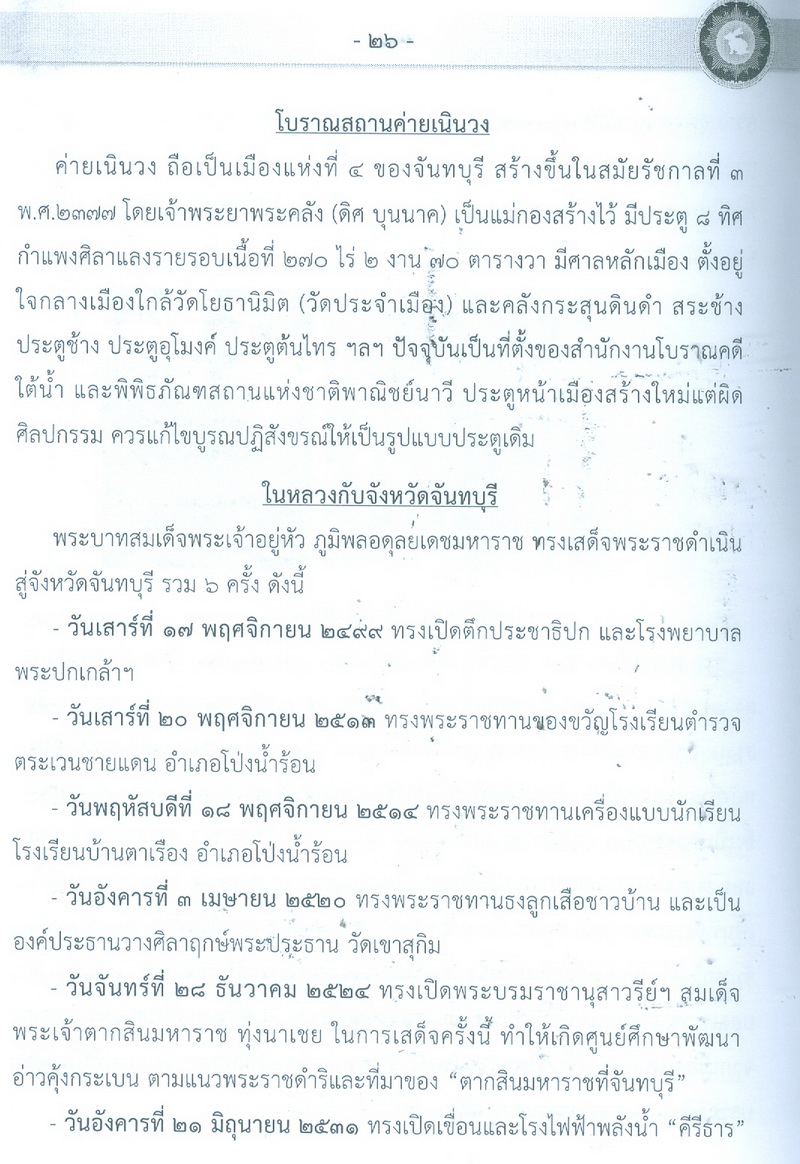 - เนื้อหาประกอบไปด้วย ประวัติศาสตร์จังหวัดจันทบุรี,ประวัติย้ายที่ตั้งตัวเมือง,พระมหากษัตริย์กับจันทบุรี,หน้าเข้าประวัติศาสตร์ที่ชาวจันทบุรีภาคภูมิใจ,หน้าประวัติศาสตร์ที่ชาวจันทบุรีขมขื่นใจ,พระบรมราชานุสาวรีย์ฯ อันเป็นที่มาของพระราชสมัญญานาม "สมเด็จพระเจ้าตากสินมหาราช",ศาลหลักเมือง,รัชกาลที่ ๕ กับจันทบุรี,พระบาทสมเด็จพระปิยะมหาราชเสด็จพระราชดำเนินเยี่ยมชาวจันทบุรี,ประวัติการเสียดินแดนไทยให้แก่ฝรั่งเศสในสมัยรัชกาลที่ ๕ รวม ๕ ครั้ง,อำเภอท่าใหม่,แหล่งรวมโบราณสถาน,รัตนเจดีย์ เขาพลอยแหวน,โบราณสถานค่ายเนินวง,ในหลวงกับจังหวัดจันทบุรี,ที่ดินอันเป็นทรัพย์สินส่วนพระองค์ ณ จังหวัดจันทบุรี,แนวพระราชดำริ,หลักการพึ่งตนเอง,เศรษฐกิจพอเพียงสำหรับผู้ที่อยู่นอกภาคการเกษตร,เศรษฐกิจพอเพียงสู่ยุทธศาสตร์ประเทศ