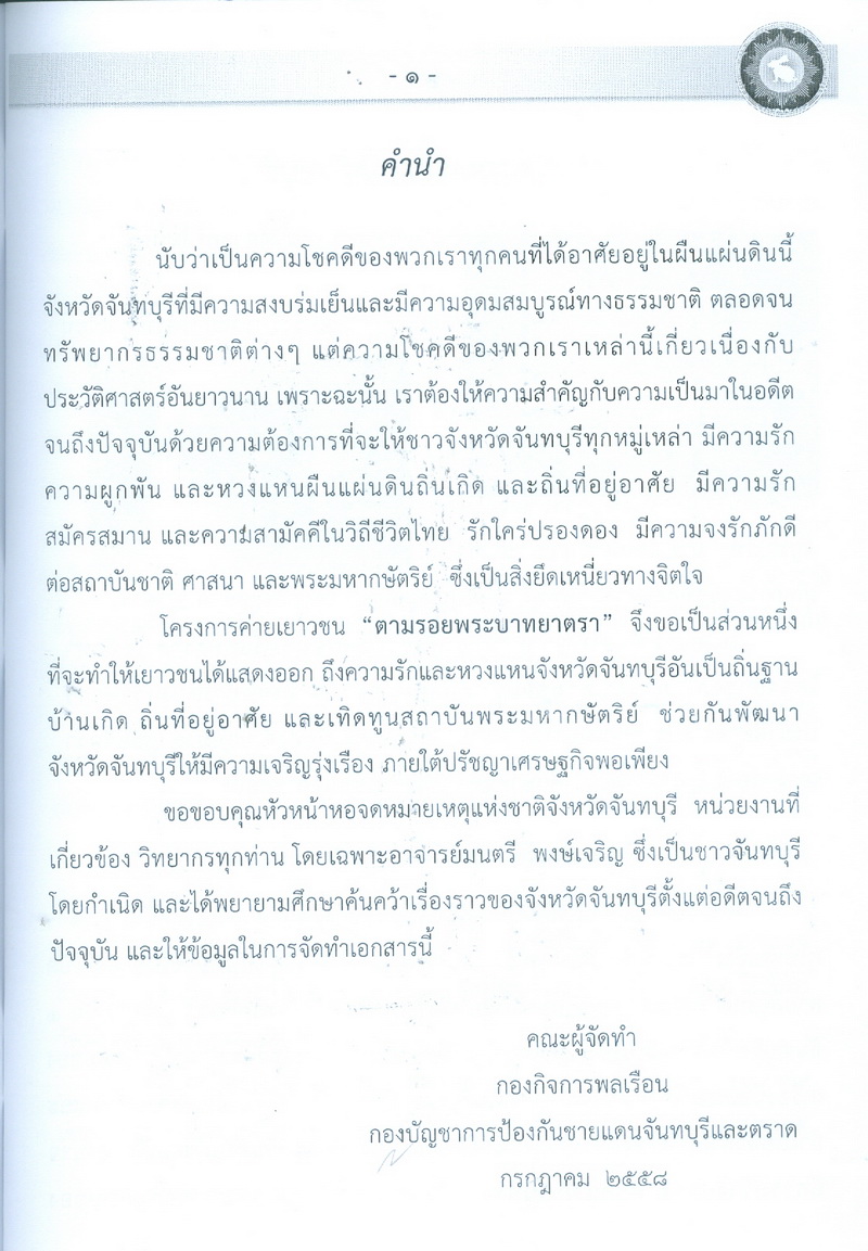 กองบัญชาการป้องกันชายแดนจันทบุรีและตราด, “โครงการค่ายเยาวชน "ตามรอยพระบาทยาตรา",” D-Library | National Library of Thailand, accessed April 2, 2026, http://164.115.27.97/digital2024/items/show/5176.