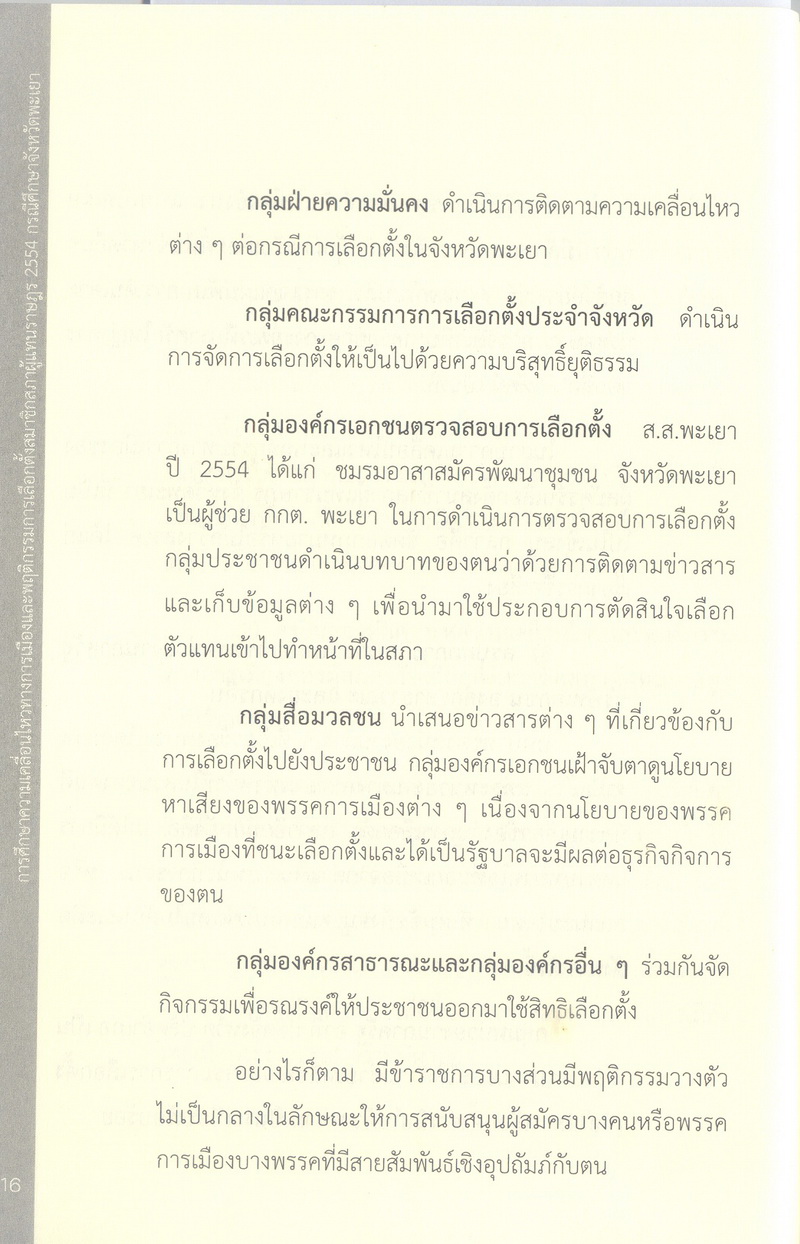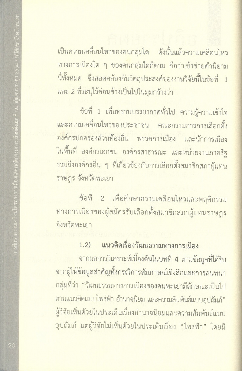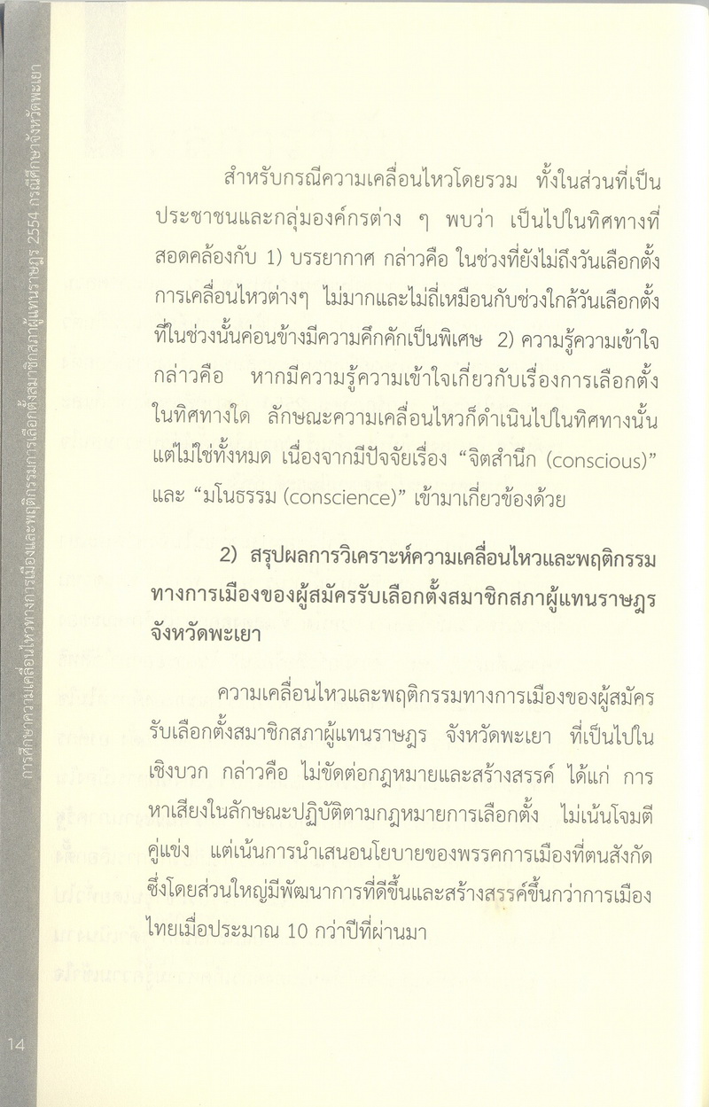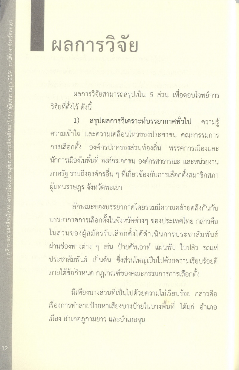 การศึกษาความเคลื่อนไหวทางการเมืองและพฤติกรรมการเลือกตั้งสมาชิกสภาผู้แทนราษฎร 2554 กรณีศึกษาจังหวัดพะเยา