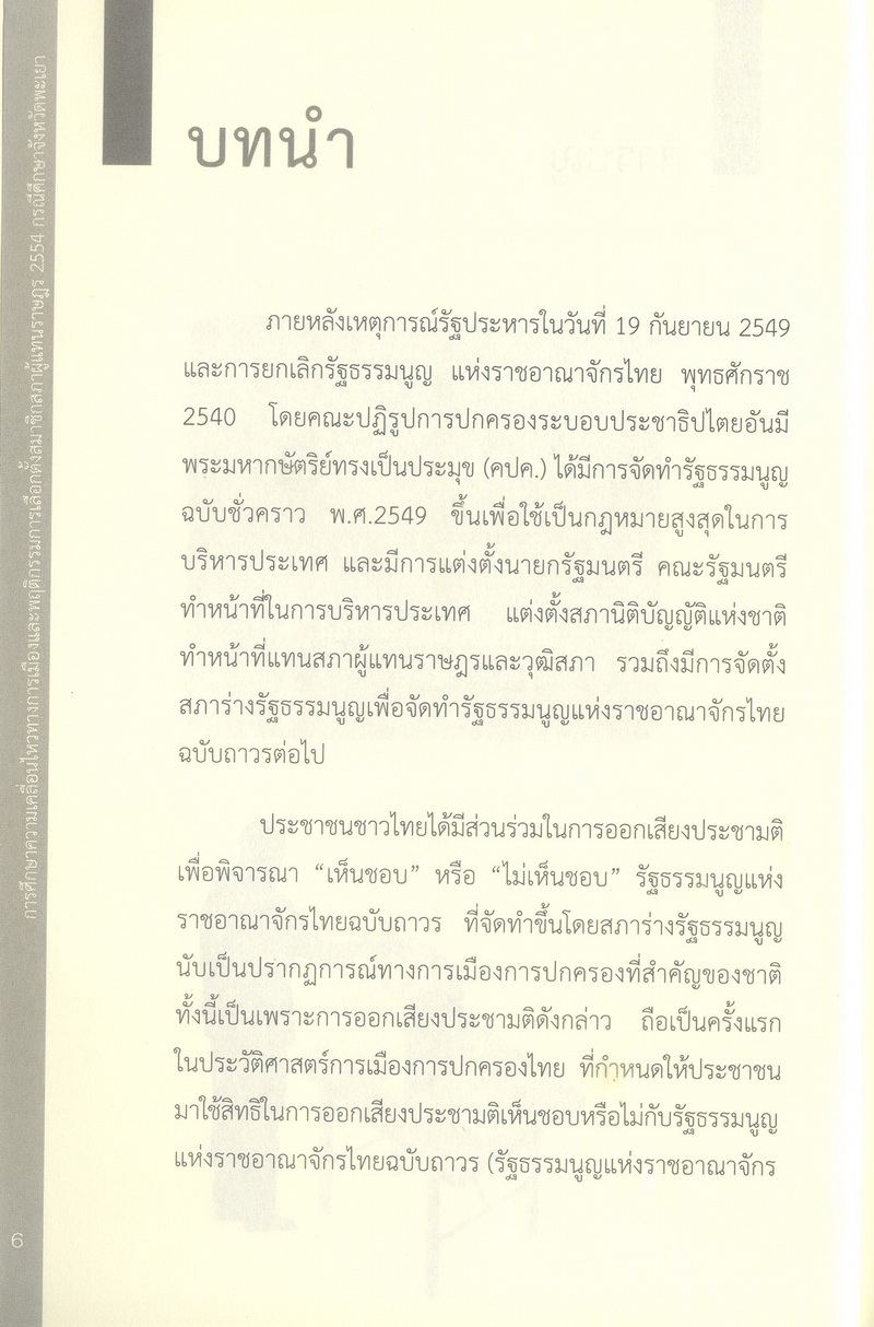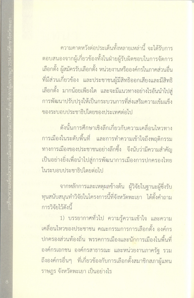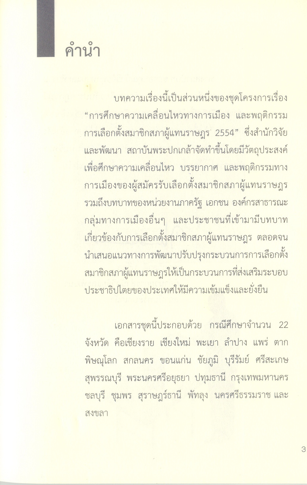 การศึกษาความเคลื่อนไหวทางการเมืองและพฤติกรรมการเลือกตั้งสมาชิกสภาผู้แทนราษฎร 2554 กรณีศึกษาจังหวัดพะเยา