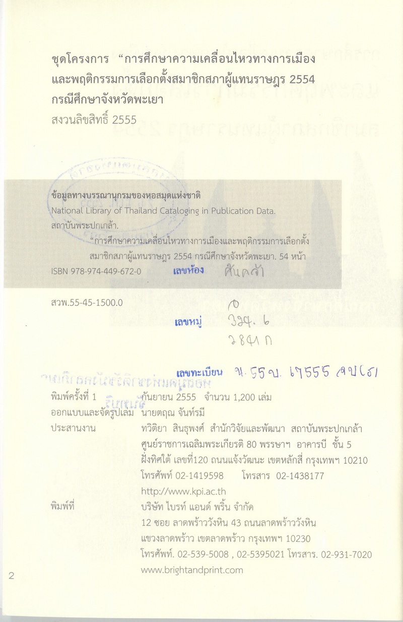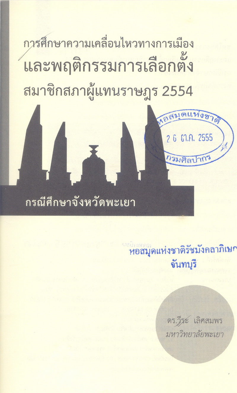 วีระ เลิศสมพร, “การศึกษาความเคลื่อนไหวทางการเมืองและพฤติกรรมการเลือกตั้งสมาชิกสภาผู้แทนราษฎร 2554 กรณีศึกษาจังหวัดพะเยา,” D-Library | National Library of Thailand, accessed April 2, 2026, http://164.115.27.97/digital2024/items/show/5177.