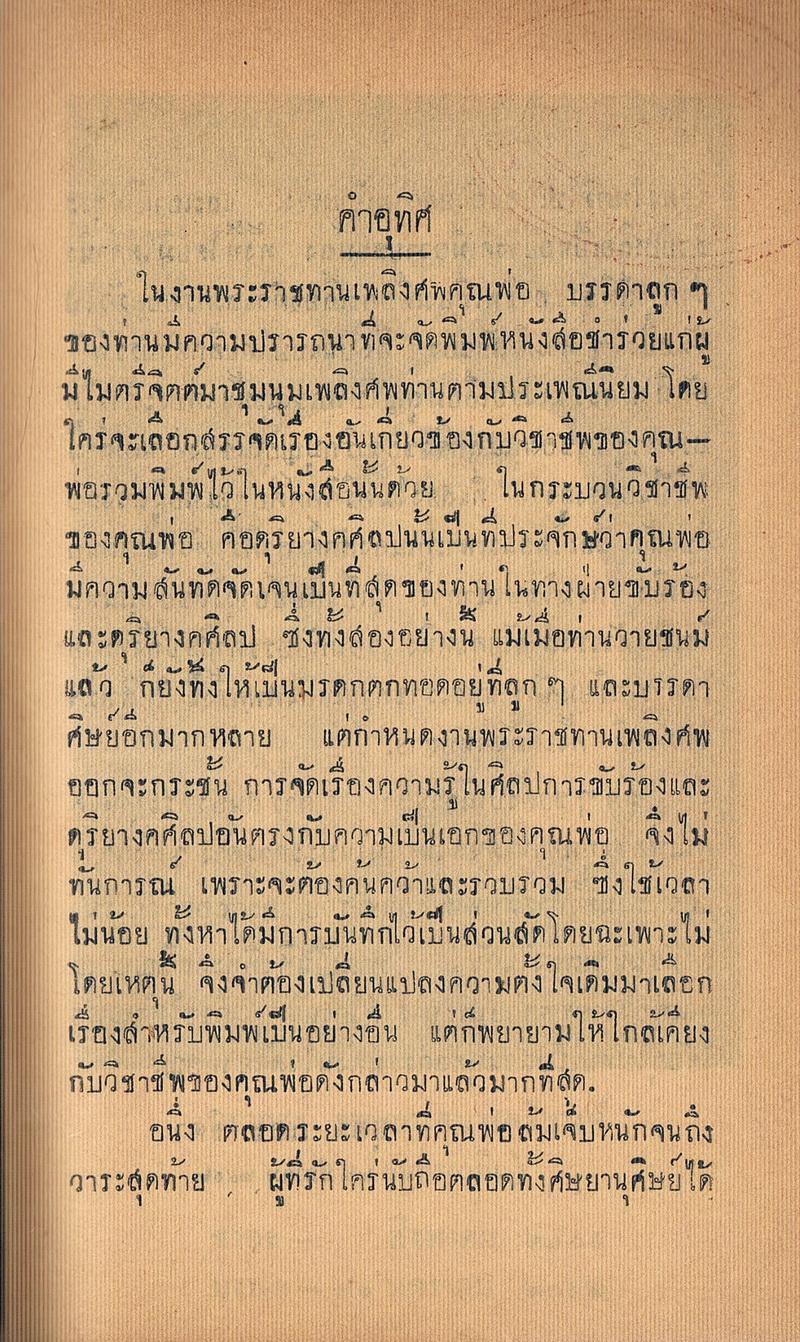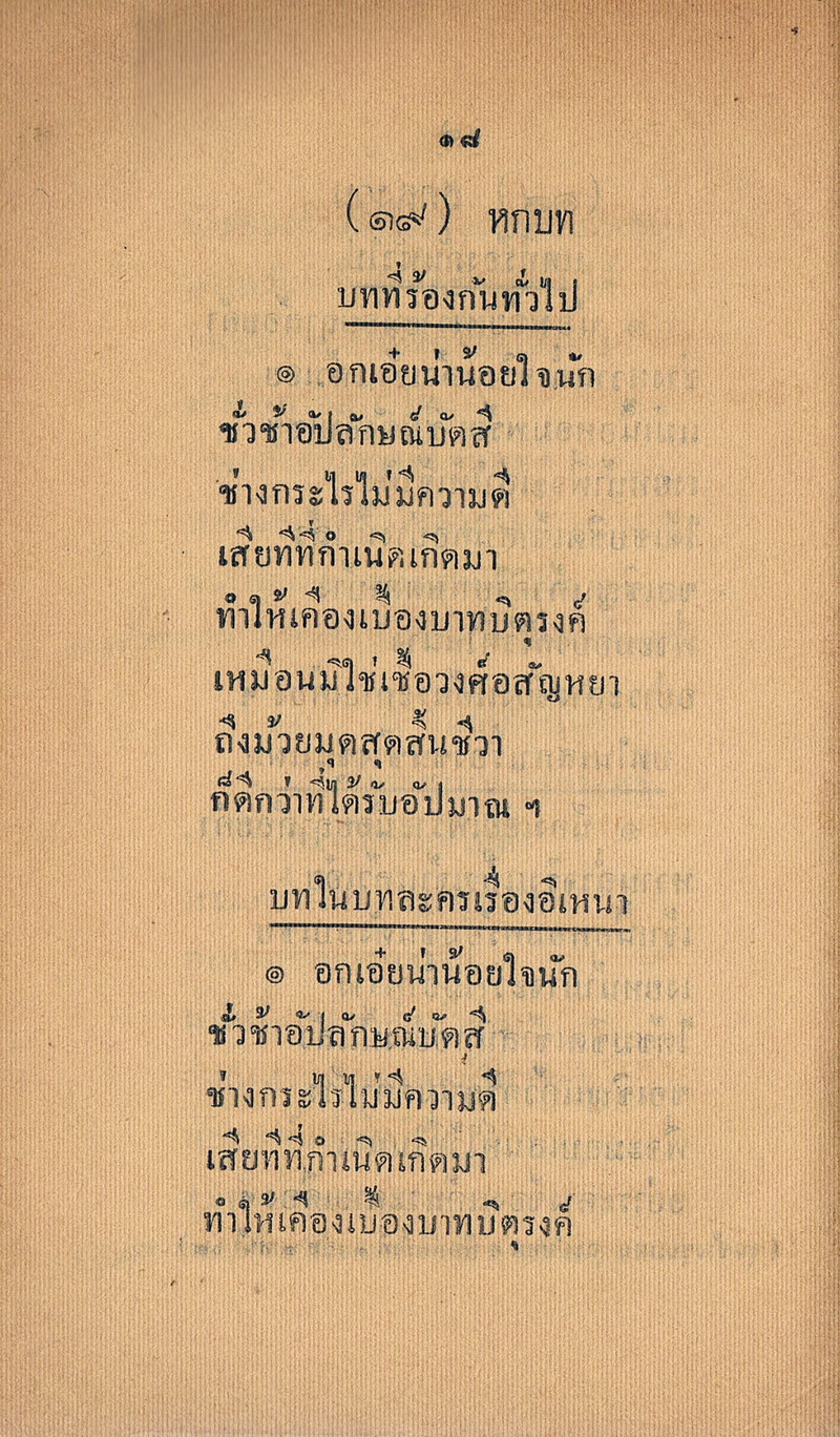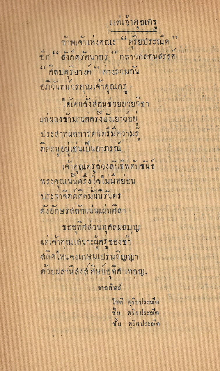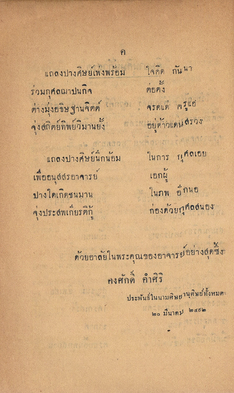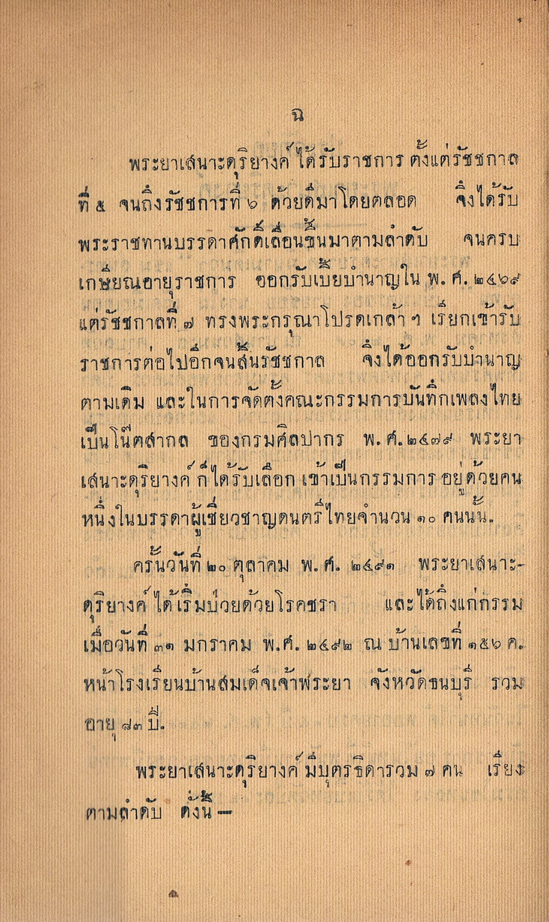 - พิมพ์แจกในงานพระราชทานเพลิงศพ เสวกตรี พระยาเสนาะดุริยางค์ (แช่ม สุนทรวาทิน) ณ สุสานวัดพระพิเรนทร์ วันที่ ๒๐ มีนาคม พ.ศ.๒๔๙๒