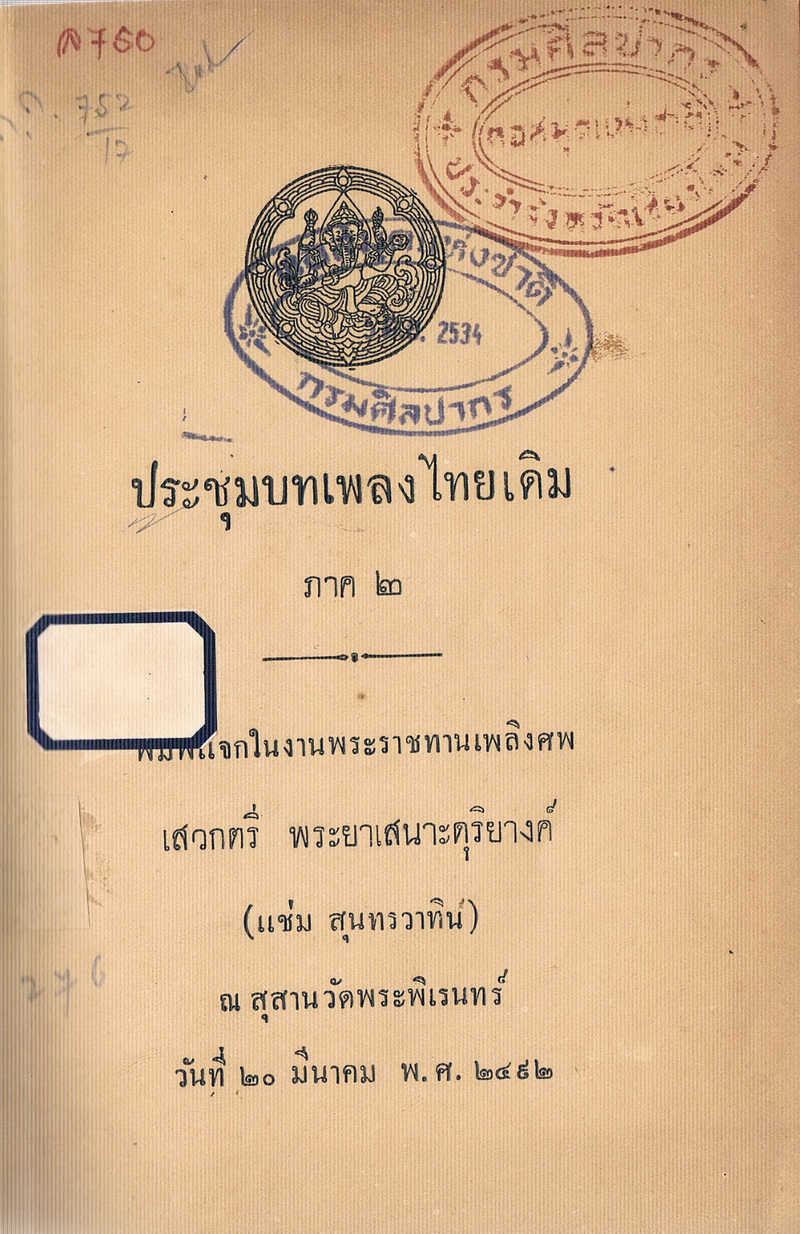 “ประชุมบทเพลงไทยเดิม ภาค ๒,” D-Library | National Library of Thailand, accessed April 2, 2026, http://164.115.27.97/digital2024/items/show/5198.