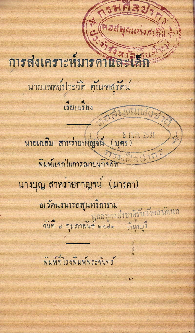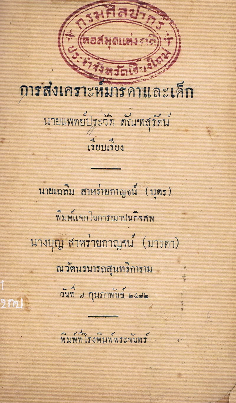 ประวัติ ตัณฑสุรัตน์, “การสังเคราะห์มารดาและเด็ก,” D-Library | National Library of Thailand, accessed April 2, 2026, http://164.115.27.97/digital2024/items/show/5200.