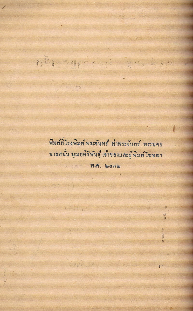 - พิมพ์แจกในการฌาปนกจิศพ นางบุญ สาหร่ายกาญจน์(มารดา) ณ วัดนรนารถสุนทริการาม วันที่ 7 กุมภาพันธ์ 2482