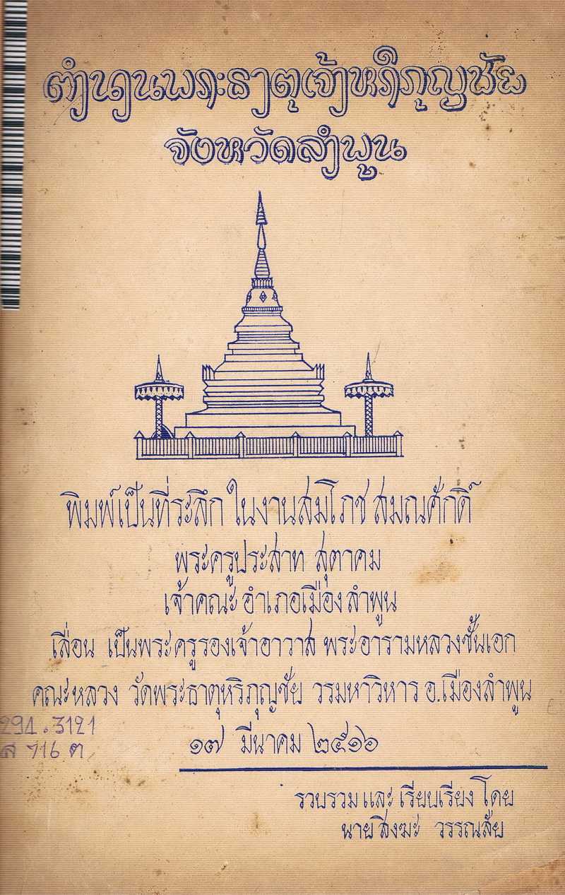 สิงฆะ วรรณชัย, “ตำนานพระธาตุเจ้าหริภุญชัย จังหวัดลำพูน,” D-Library | National Library of Thailand, accessed April 2, 2026, http://164.115.27.97/digital2024/items/show/5204.