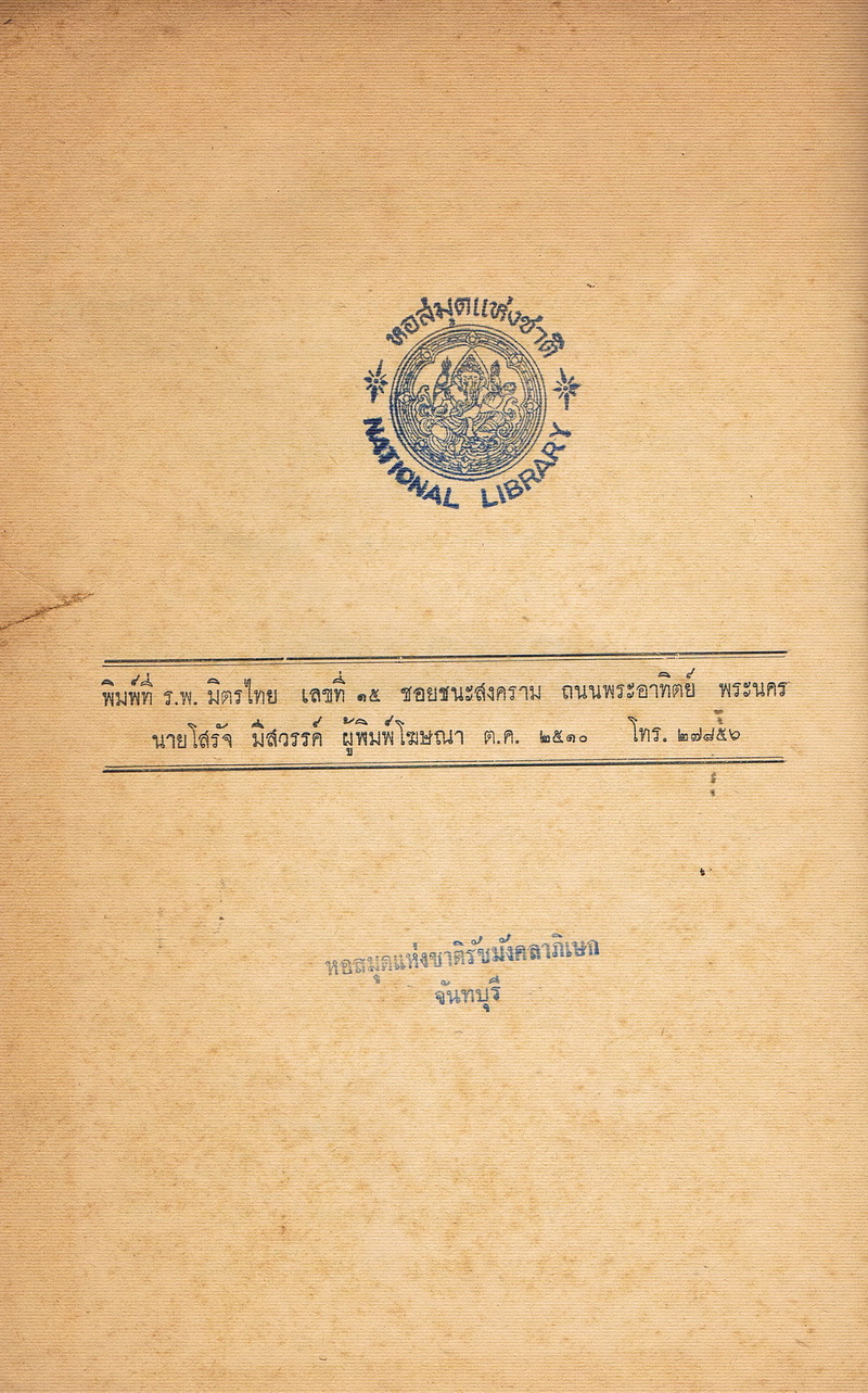 - ต้นฉบับอยู่ที่หอสมุดแห่งชาติรัชมังคลาภิเษก จันทบุรี