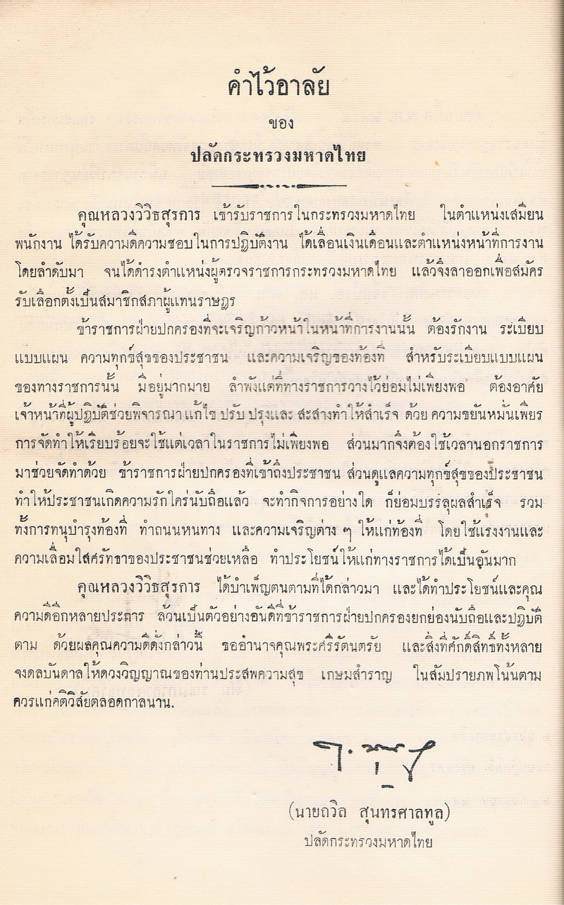 - ประวัติมหาดไทย ของ หลวงวิวิธสุรการ