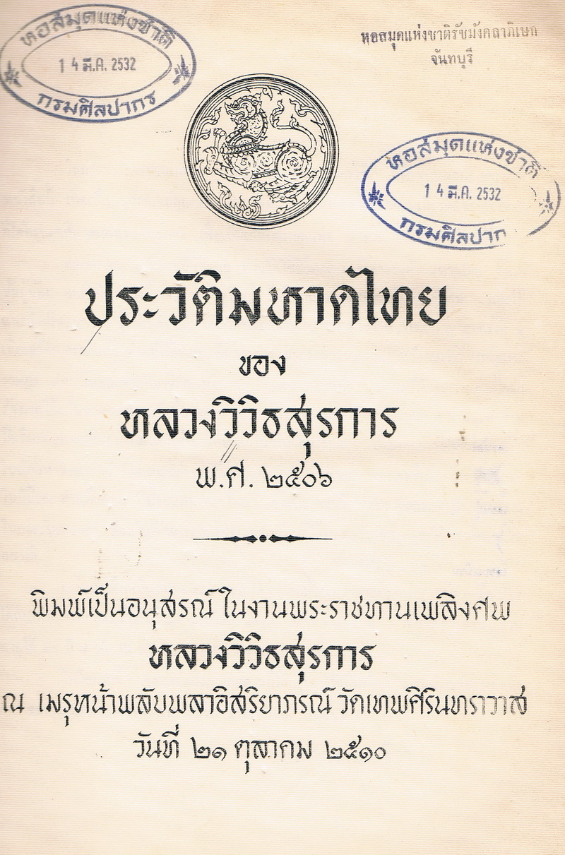 วิวิธสุรการ, หลวง, “ประวัติมหาดไทย ของ หลวงวิวิธสุรการ,” D-Library | National Library of Thailand, accessed April 2, 2026, http://164.115.27.97/digital2024/items/show/5205.