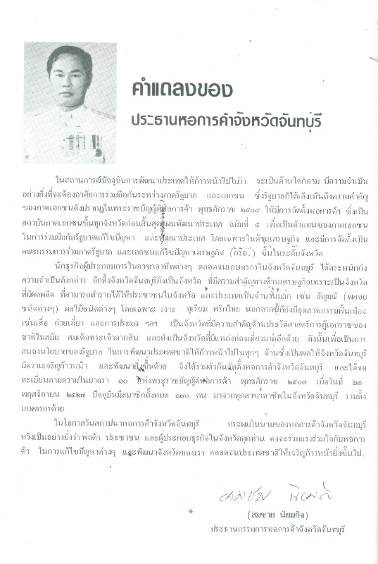 พิธีสถาปนาหอการค้าจังหวัดจันทบุรี, “พิธีสถาปนาหอการค้าจังหวัดจันทบุรี,” D-Library | National Library of Thailand, accessed April 2, 2026, http://164.115.27.97/digital2024/items/show/5215.