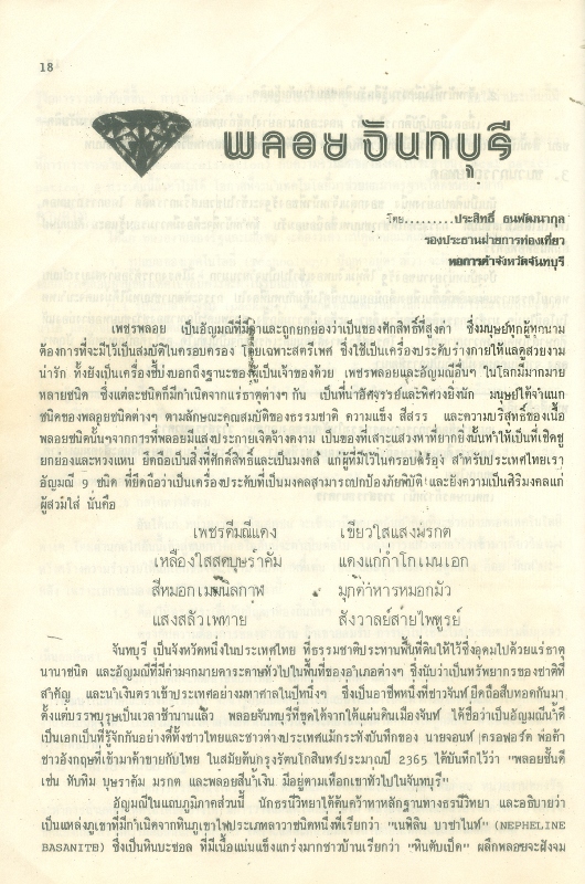 - เนื้อหาประกอบด้วย สาส์นจากฯพณฯพลเอก เปรม ติณสูลานนท์ และคณะ คำแถลงการของประธานหอการค้า กำหนดการ คณะกรรมการบริหารหอการค้า ประวัติหอการค้าจังหวัดจันทบุรี บทบาท/หน้าที่หอการค้า ปัญหาเศรษฐกิจไทยปี2528 การนำเทคโนโลยีมาพัฒนาชนบท พลอยจันทบุรี ประวัติเมืองจันท์ อนุสรณ์แห่งความรัก ไทยเสียดินแดน เรื่องปราบฮั่งยี่กำเริบ สถานที่ท่องเที่ยวจันท์ และประวัติของชนชาติซองเกี่ยวเนื่องกับเมืองจันท์.