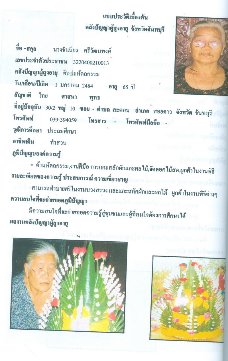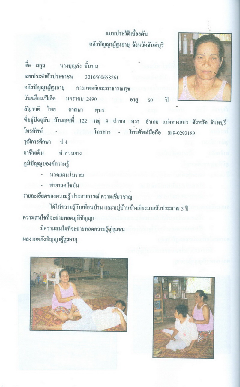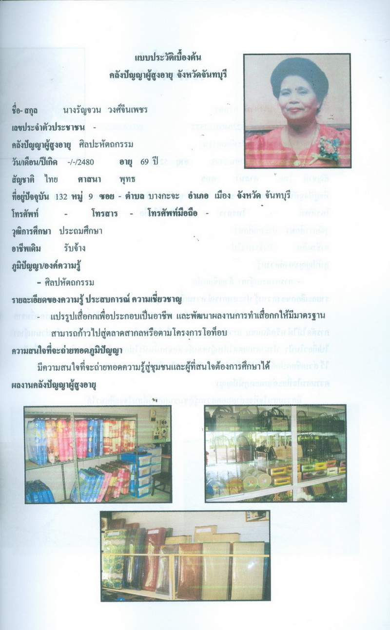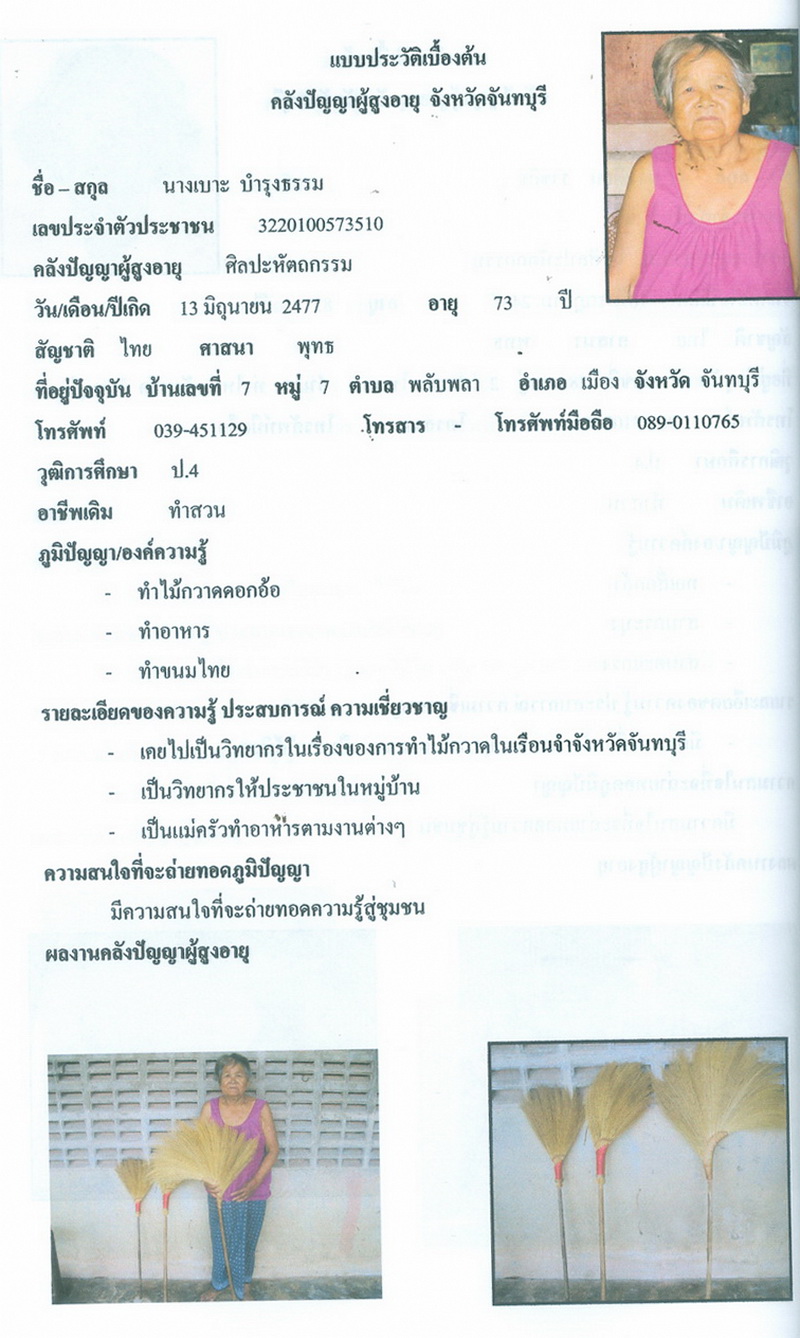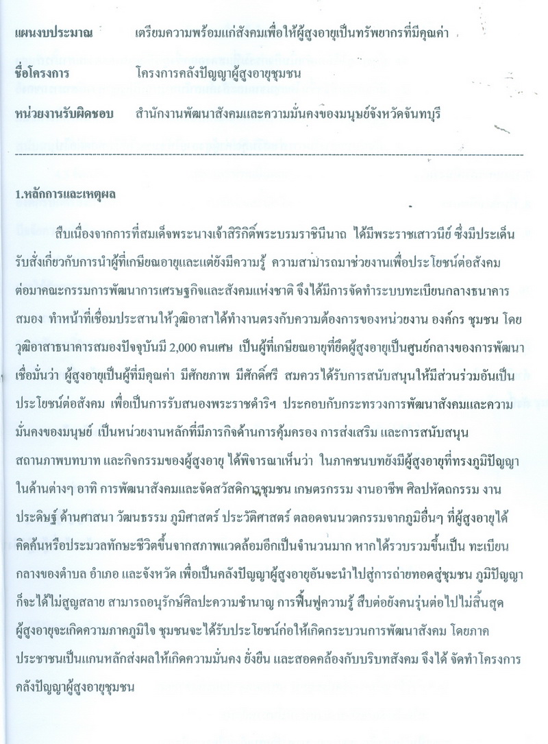 - โครงการคลังปัญญาผู้สูงอายุในชุมชน จังหวัดจันทบุรี