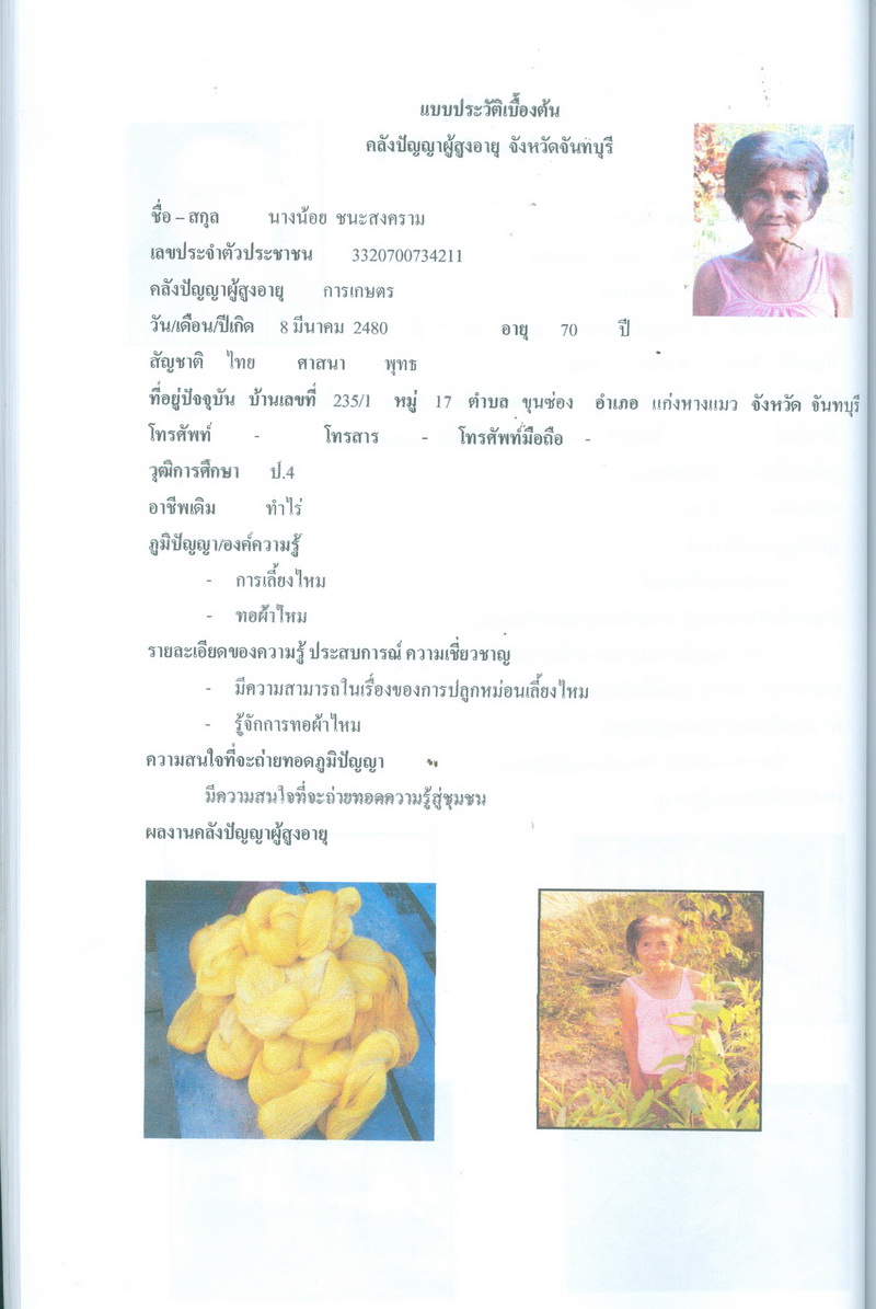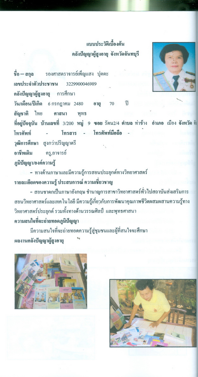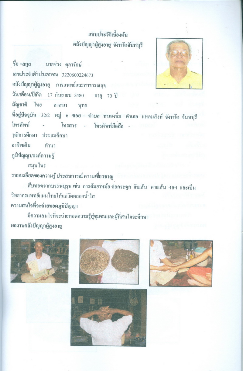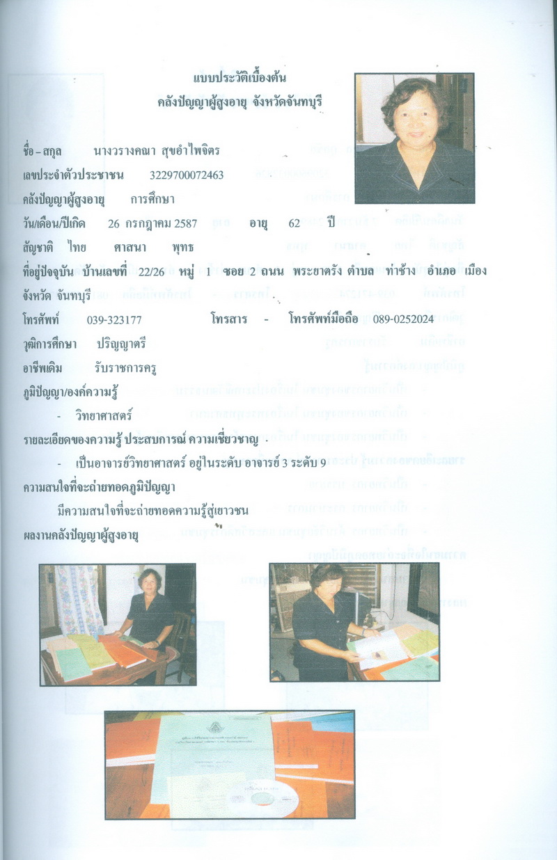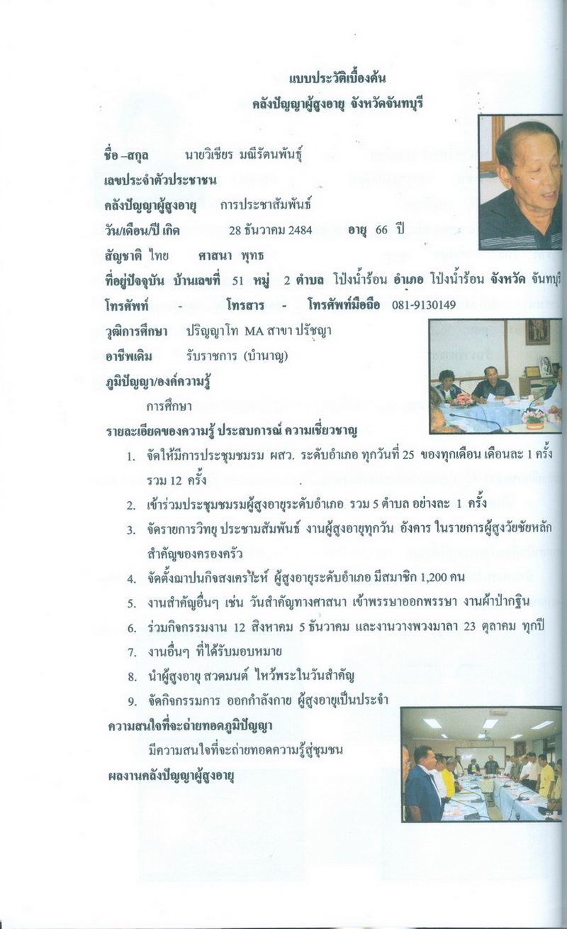 - โครงการคลังปัญญาผู้สูงอายุในชุมชน จังหวัดจันทบุรี