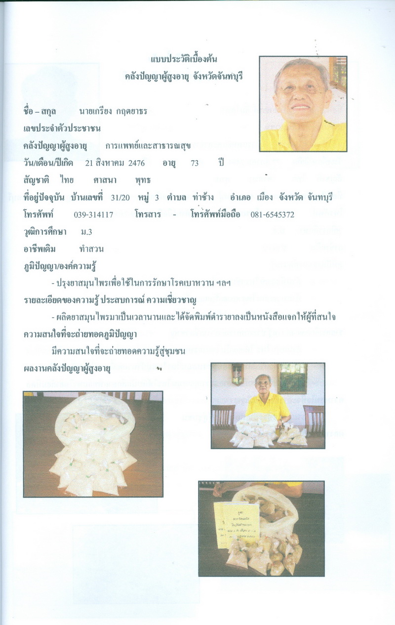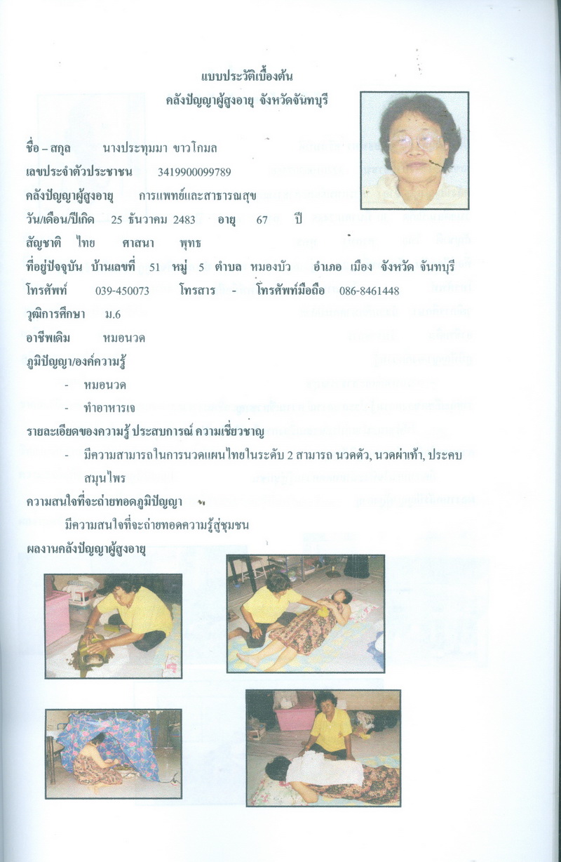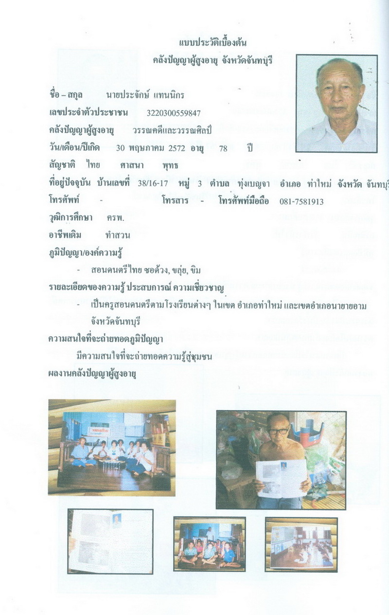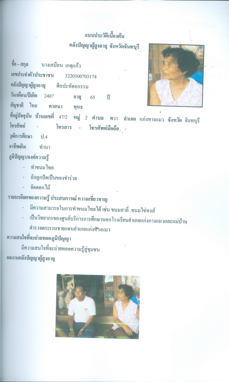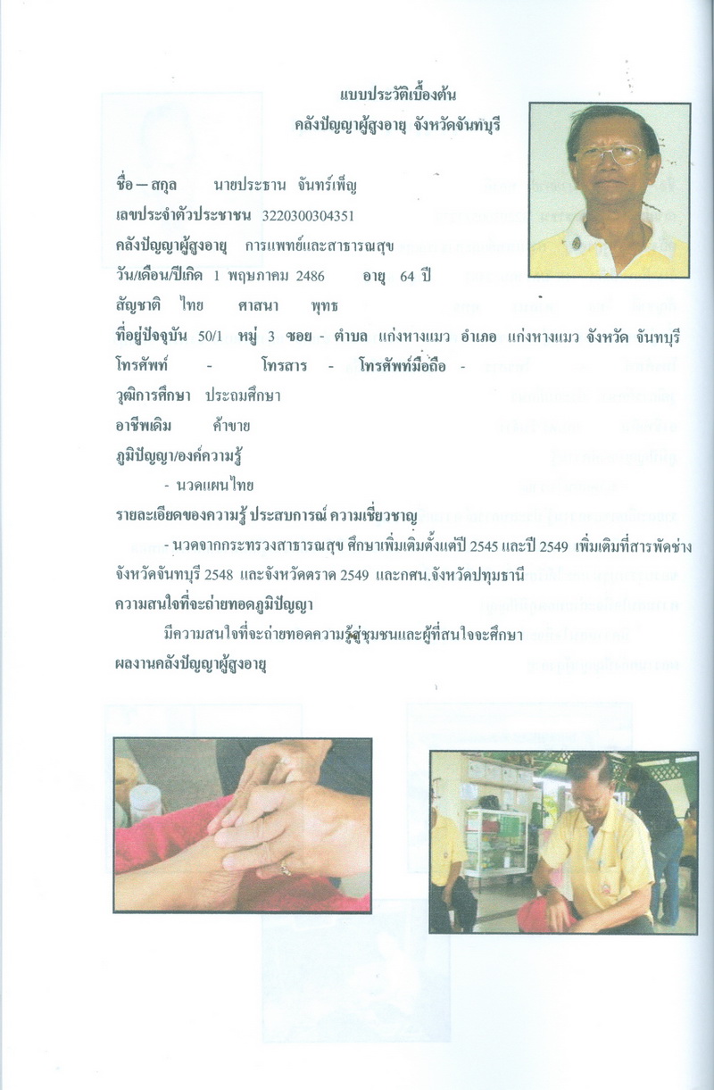 - โครงการคลังปัญญาผู้สูงอายุในชุมชน จังหวัดจันทบุรี
