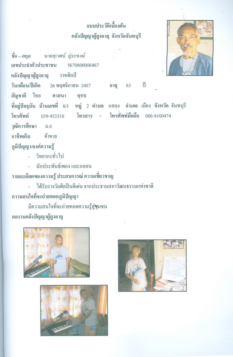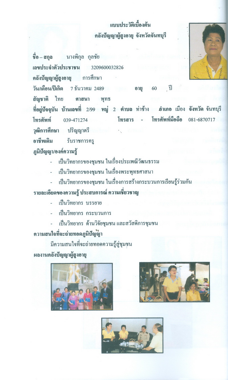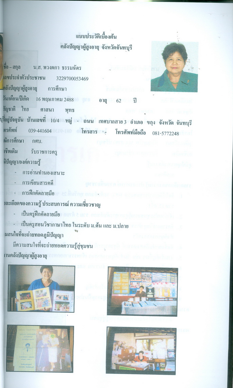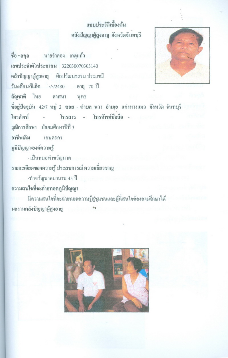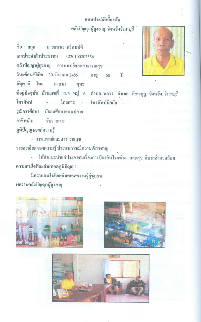 - โครงการคลังปัญญาผู้สูงอายุในชุมชน จังหวัดจันทบุรี