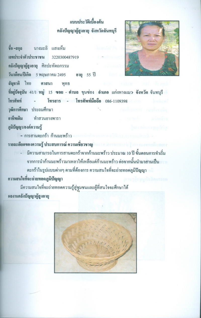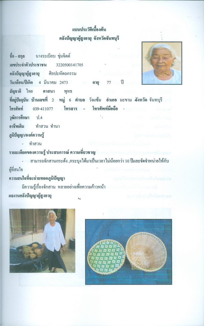 โครงการคลังปัญญาผู้สูงอายุในชุมชน จังหวัดจันทบุรี