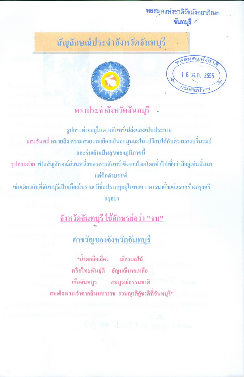 - หนังสือเล่มนี้เนื้อหาประกอบด้วย สัญลักษณ์จันทบุรี ตราประจำจังหวัดจันทบุรี