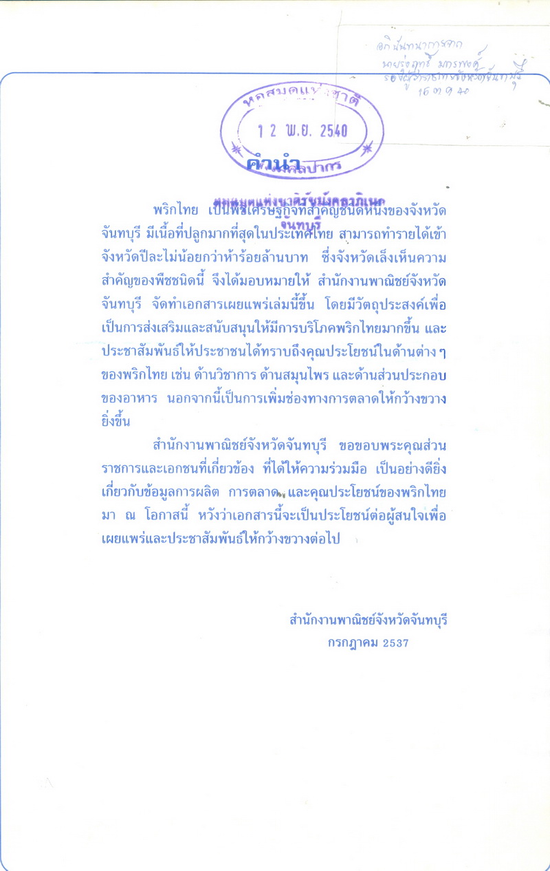 สำนักงานพาณิชย์ จังหวัดจันทบุรี, “การผลิต การตลาด และประโยชน์ ของพริกไทย,” D-Library | National Library of Thailand, accessed April 2, 2026, http://164.115.27.97/digital2024/items/show/5244.