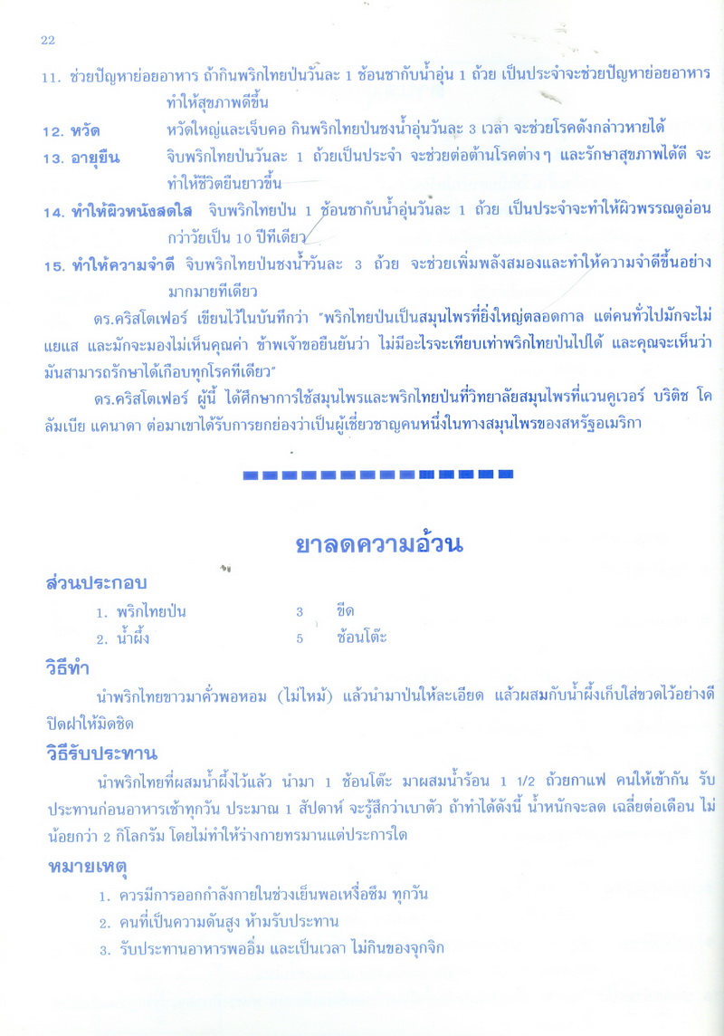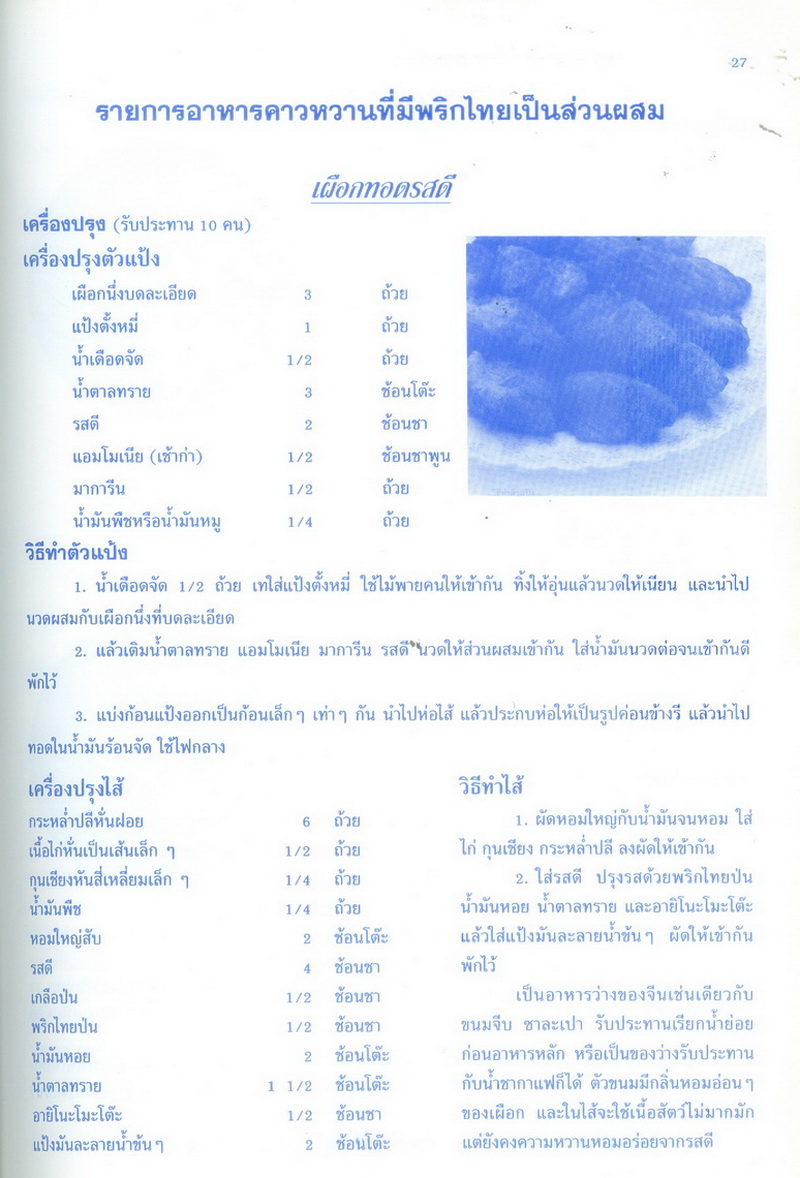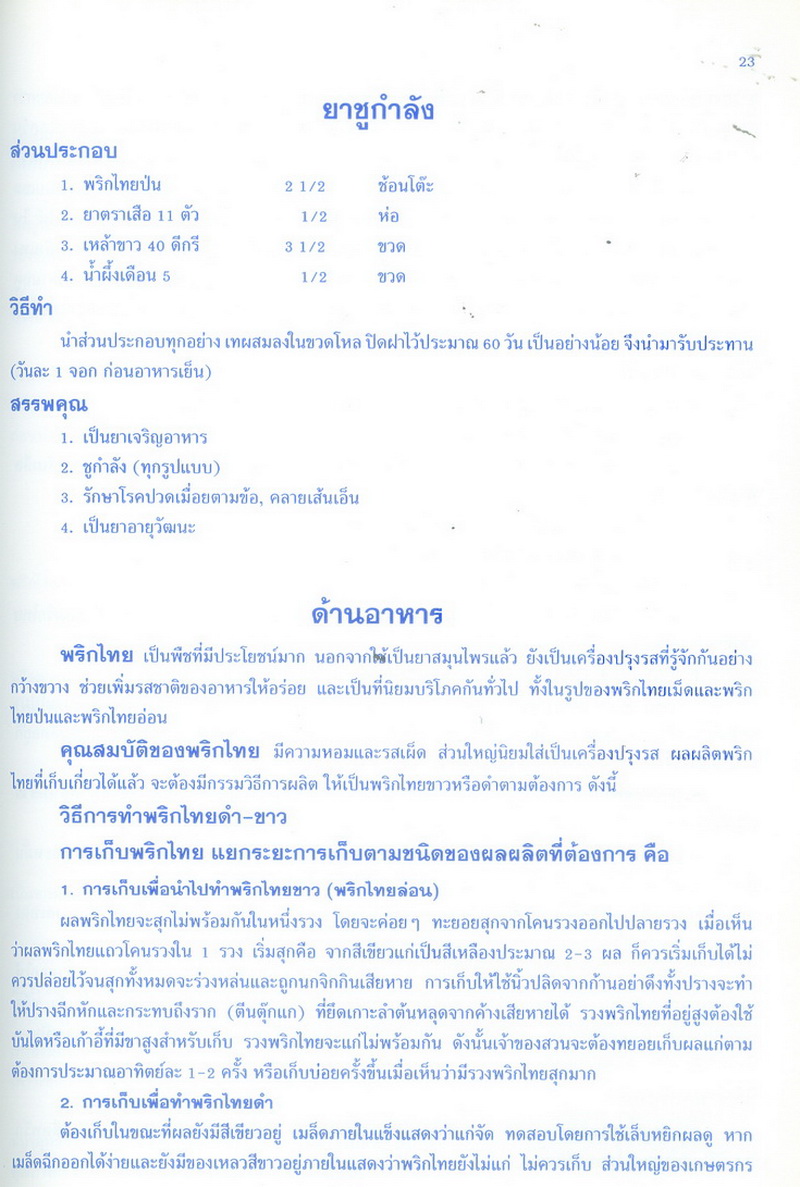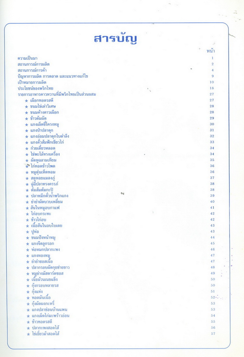 - เนื้อหาประกอบด้วย ความเป็นมา สถานการณ์การผลิต สถานการณ์การค้า ปัญหาการผลิต การตลาด และแนวทางแก้ไข เป้าหมายการผลิต ประโยชน์ของพริกไทย รายการอาหารคาวหวานที่มีพริกไทยเป็นส่วนผสม จำนวน 48 รายการ เช่น ไก่อบกระทะ เนื้อสันในอบใบเตย แกงคั่วส้มฟักเขียวไก่ แกงป่าปลาดุก ฯลฯ