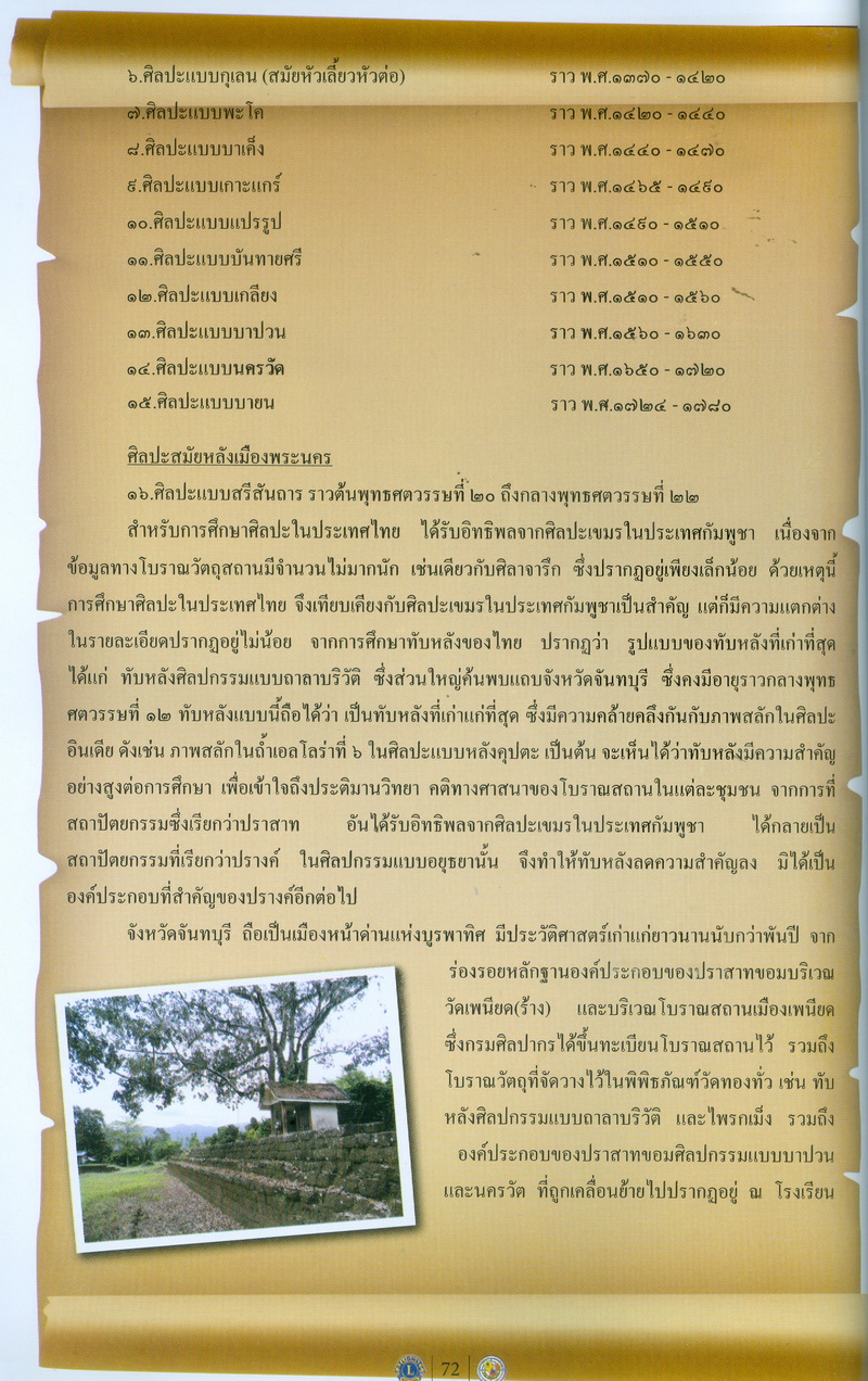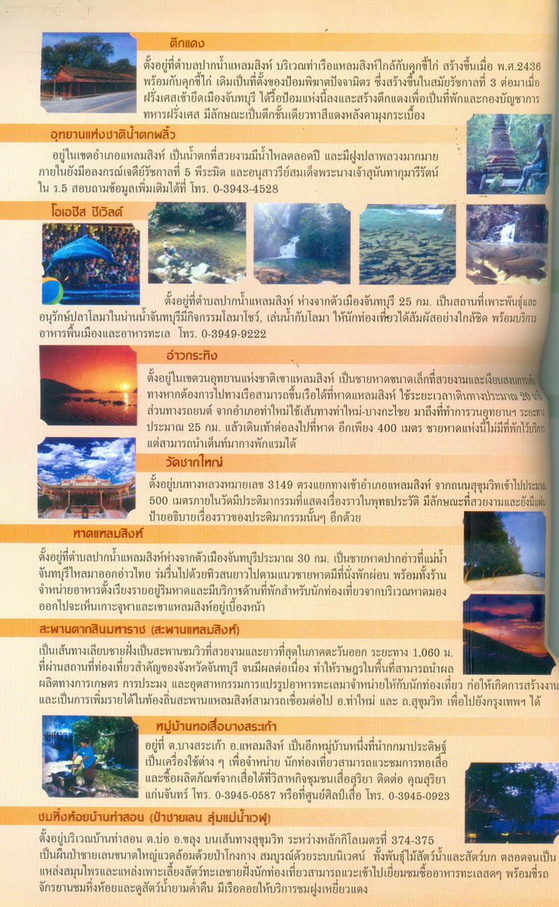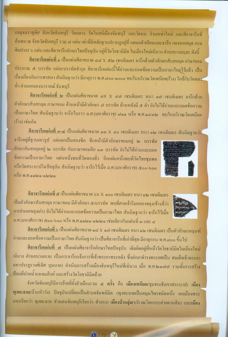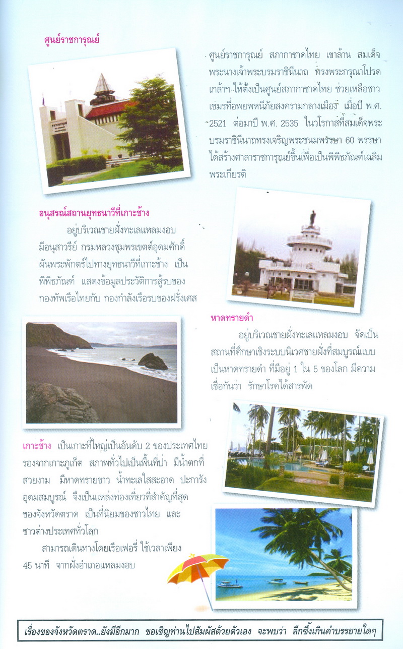 - เนื้อหาประกอบด้วย เปิดประตูสู่จันทบุรี ประวัติศาสตร์จันทบุรี ศิลปะสมัยก่อนเมืองพระนคร ศิลปะหลังเมืองพระนคร หลักศิลาจารึก 1-7 หน้าประวัติศาสตร์ชาวจันทบุรีภาคภูมิใจ หน้าประวัติศาสตร์ชาวจันทบุรีขมขื่นใจ ที่มาของชื่อ "จันทบุรี" พระบรมราชานุสาวรีย์ฯ อันเป็นที่มาของพระราชสมัญญานาม "สมเด็จพระเจ้าตากสินมหาราช" กับพระราชกรณียกิจสมเด็จพระนางเจ้ารำไพพรรณี แหล่งท่องเที่ยวอำเภอต่างๆ ในจันทบุรี อาหารพื้นบ้าน พลอยเมืองจันท์ "ตราดเพชรงามแดนบูรพา อาหารดังจังหวัดตราด และแหล่งท่องเที่ยวเมืองตราด