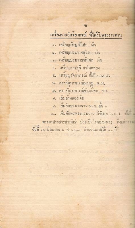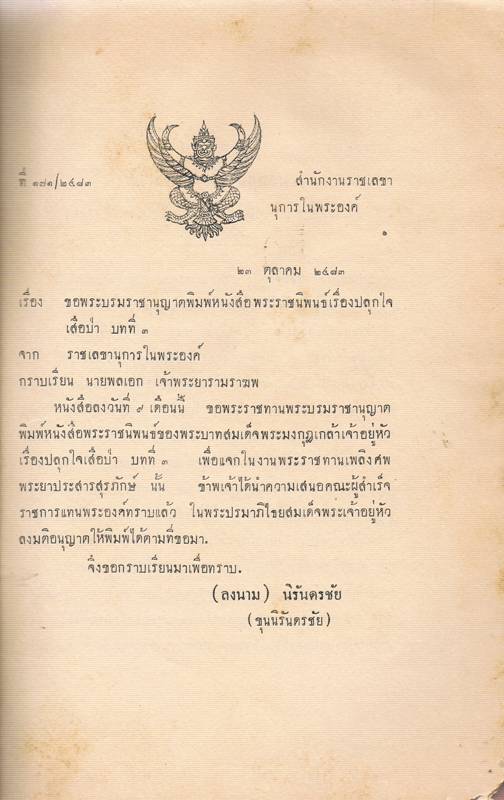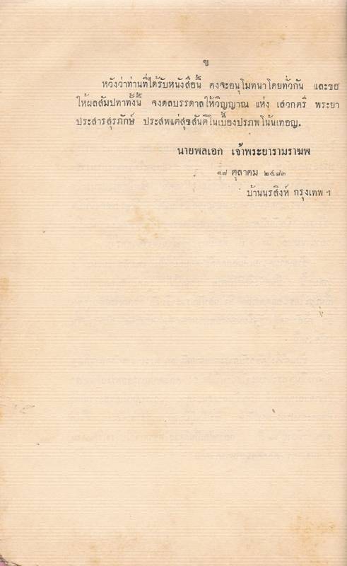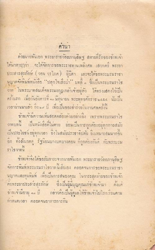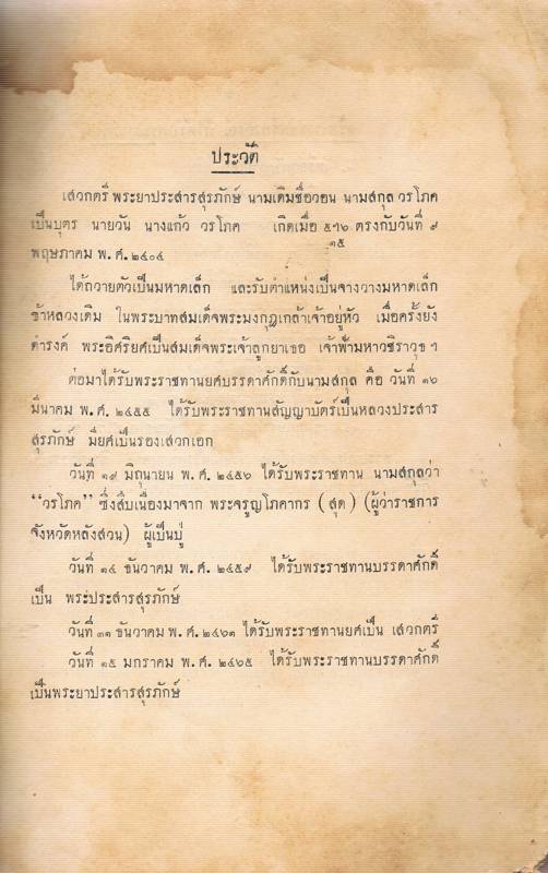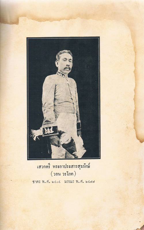 - พิมพ์แจกในงานพระราชทานเพลิงศพ เสวกตรี พระยาประสารสุรภักษ์ (วอน วรโภค) ณ เมรุวัดมกุฎกษัตริยาราม วันที่ 24 พฤศจิกายน พ.ศ. 2483