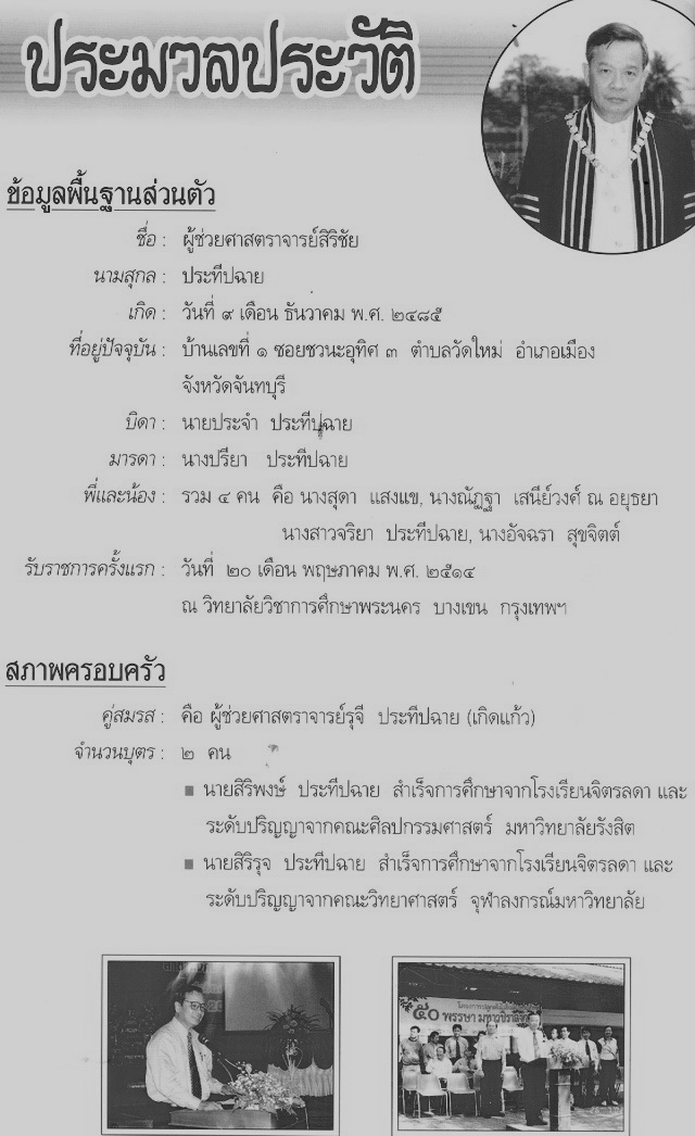 สถาบันราชภัฏรำไพพรรณี , “ผู้ช่วยศาสตราจารย์สิริชัย ประทีปฉาย (รูปภาพ),” D-Library | National Library of Thailand, accessed April 2, 2026, http://164.115.27.97/digital2024/items/show/5251.