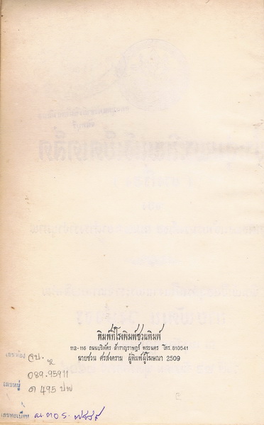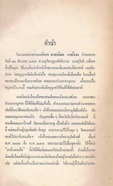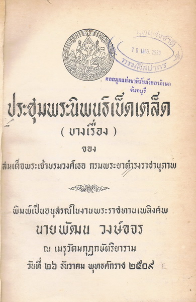 - พิมพ์เป็นอนุสรณ์ในงานพระราชทานเพลิงศพ นายพัฒน วงษ์ขจร ณ เมรุวัดมกุฏกษัตริยาราม วันที่ 26 ธันวาคม พุทธศักราช 2509