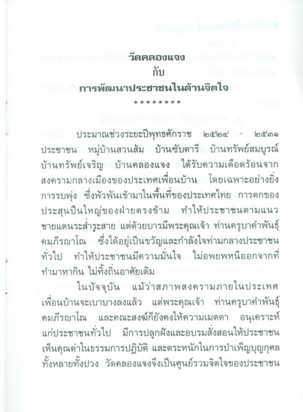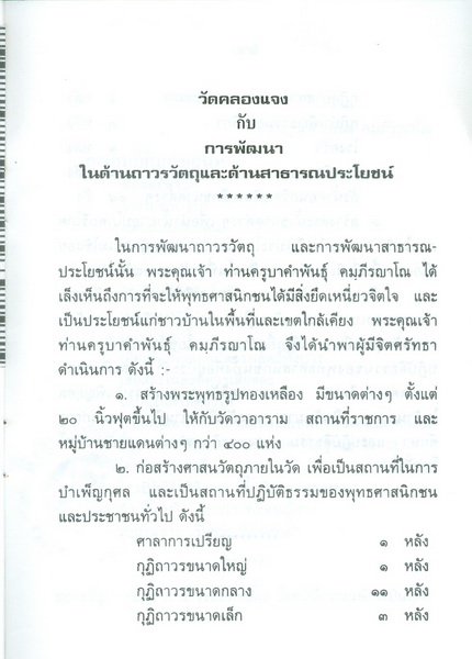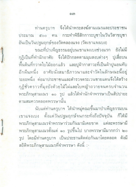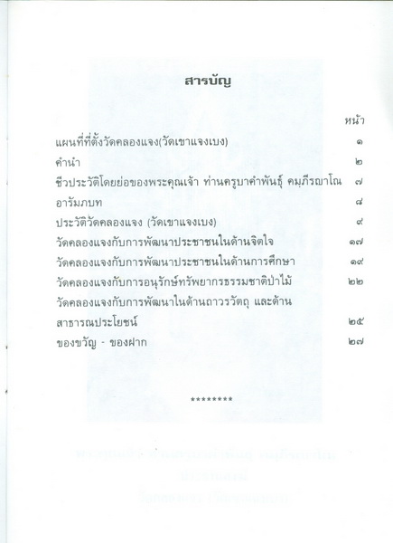 - เนื้อหาประกอบด้วย แผนที่ตั้งวัดคลองแจง(วัดเขาแจงเบง) คำนำ ชีวประวัติโดยย่อของพระคุณเจ้าท่านครูบาคำพันธ์ คม.ภีรญาโณ อารัมภบท ประวัติวัดคลองแจง ๆกับการพัฒนาประชาชนด้านจิตใจ ด้านการศึกษา ด้านการอนุรักษ์ทรัพยากรธรรมชาติป่าไม้ ด้านถาวรวัตถุ ด้านสาธารณประโยชน์ และของขวัญของฝาก.
