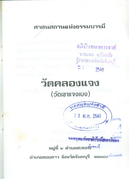 สำนักงานศึกษาธิการอำเภอสอยดาว จันทบุรี, “ศาสนสถานแห่งธรรมบารมี วัดคลองแจง(วัดเขาแจงเบง),” D-Library | National Library of Thailand, accessed April 2, 2026, http://164.115.27.97/digital2024/items/show/5369.