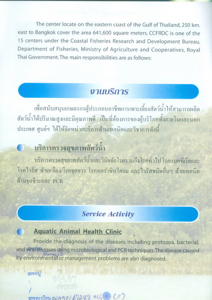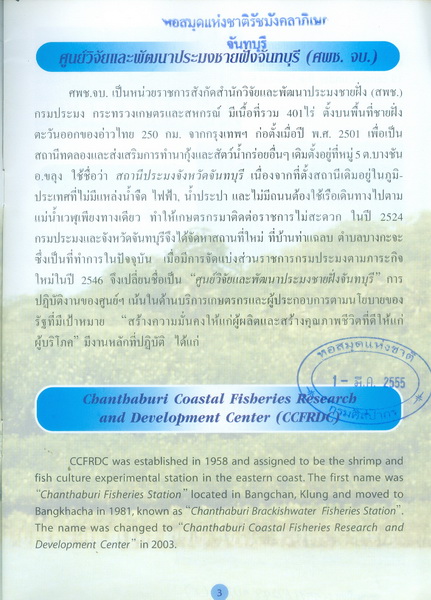 - เป็นเอกสารแนะนำศูนย์วิจัยและพัฒนาประมงชายฝั่งจันทบุรี