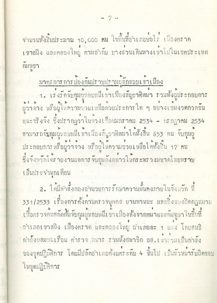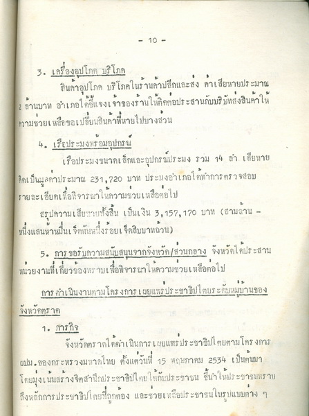 - เป็นเอกสารบรรยายสรุปจังหวัดตราด คำนำ แผนที่จังหวัดตราด สภาพทั่วไป ขนาดและที่ตั้ง ลักษณะภูมิประเทศและภูมิอากาศ ปัญหาโจรเขมรปล้นราษฏรไทย ประชากร ปัญหาการลักลอบเข้าเมือง ปัญหาน้ำท่วม และโครงการเผยแพร่ประชาธิปไตยระดับหมู่บ้าน