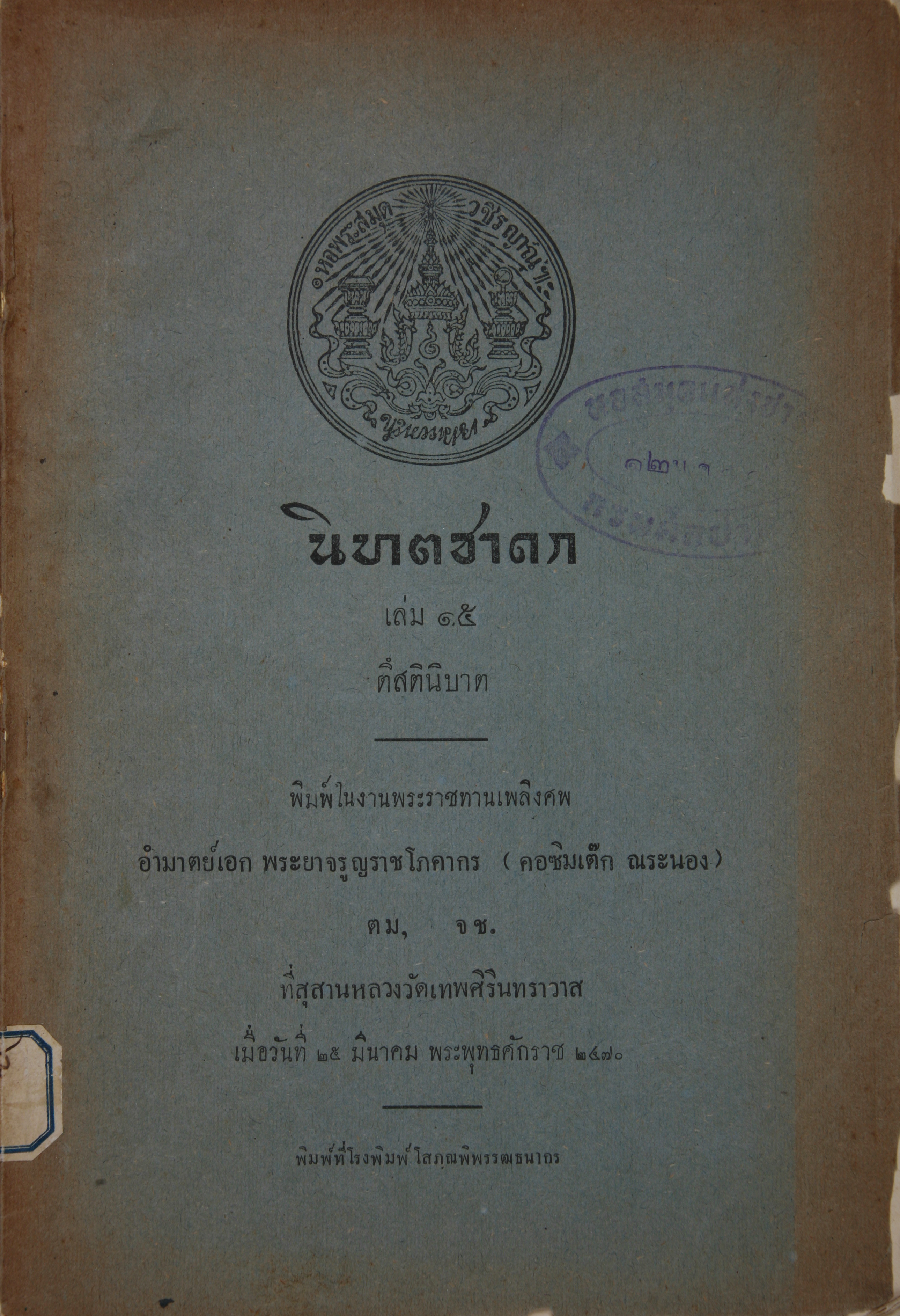 ยิ้ม ปัณฑยางกูร and พระธรรมดิลก, “นิบาตชาดก เล่ม 15 ตึสตินิบาต,” D-Library | National Library of Thailand, accessed April 2, 2026, http://164.115.27.97/digital2024/items/show/5530.
