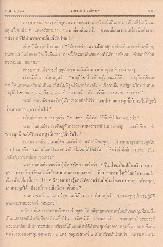 - ภายในเล่ม เป็นเรื่องเกี่ยวกับ สาส์นสมเด็จ รายงานตรวจราชการหัวเมือง เพชรบุรี สมุทรสาคร ของสมเด็จฯ กรมพระยาดำรงราชานุภาพ ร.ศ. 117 รายงานการเสด็จพระราชดำเนินที่บ้านเชียง อำเภอหนองหาน จังหวัดอุดรธานี อายุของคนก่อนประวัติสาสตร์ในประเทศไทย งานของกรมศิลปากรในรอบปีที่ 39 คำอ่านศิลาจารึก อักษรและภาษาขอม ได้มาจากบ้านพังพวย อำเภออรัญญประเทศ จังหวัดปราจีนบุรี โบราณคดีริ้วแหลมไททางธรณีวิทยา และศาสนาพราหมณ์ในอาณาจักรขอม