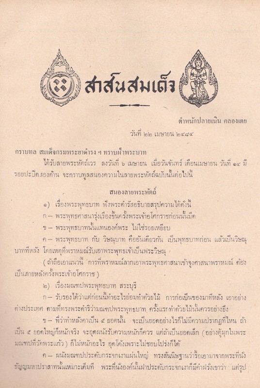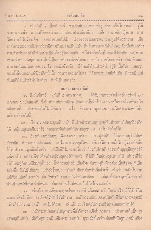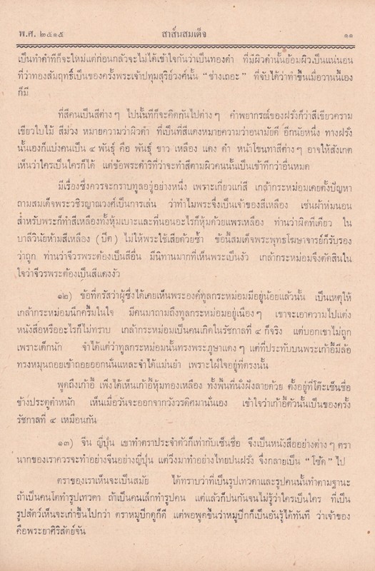 - ภายในเล่ม เป็นเรื่องเกี่ยวกับ สาส์นสมเด็จ ความเห็นเรื่องกำเนิดเมืองสวรรคโลก สุโขทัย ทวารวดีอยู่ที่ไหน วินิจฉัยพระชนมายุพ่อขุนรามคำแหง คำอ่านจารึกบนหัวระฆังสัมฤทธิ์ อักษรขอม ภาษาไทย และภาษมคธ ที่ได้มาจากวัดคงคาวดี ตำบลกะหรอ อำเภอท่าศาลา จังหวัดนครศรีธรรมราช ประวัติเพลงสรรเสริญพระบารมี เพลงชาติ และเรื่องศาสนาพราหมณ์ในอาณาจักรขอม