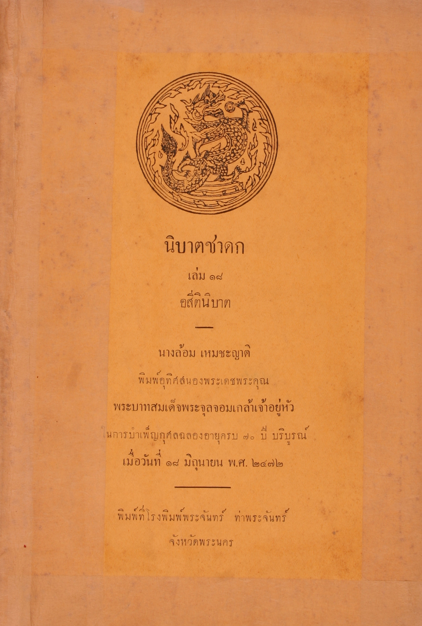 ยิ้ม ปัณฑยางกูร et al., “นิบาตชาดก เล่ม 18 อสีตินิบาต,” D-Library | National Library of Thailand, accessed April 2, 2026, http://164.115.27.97/digital2024/items/show/5924.