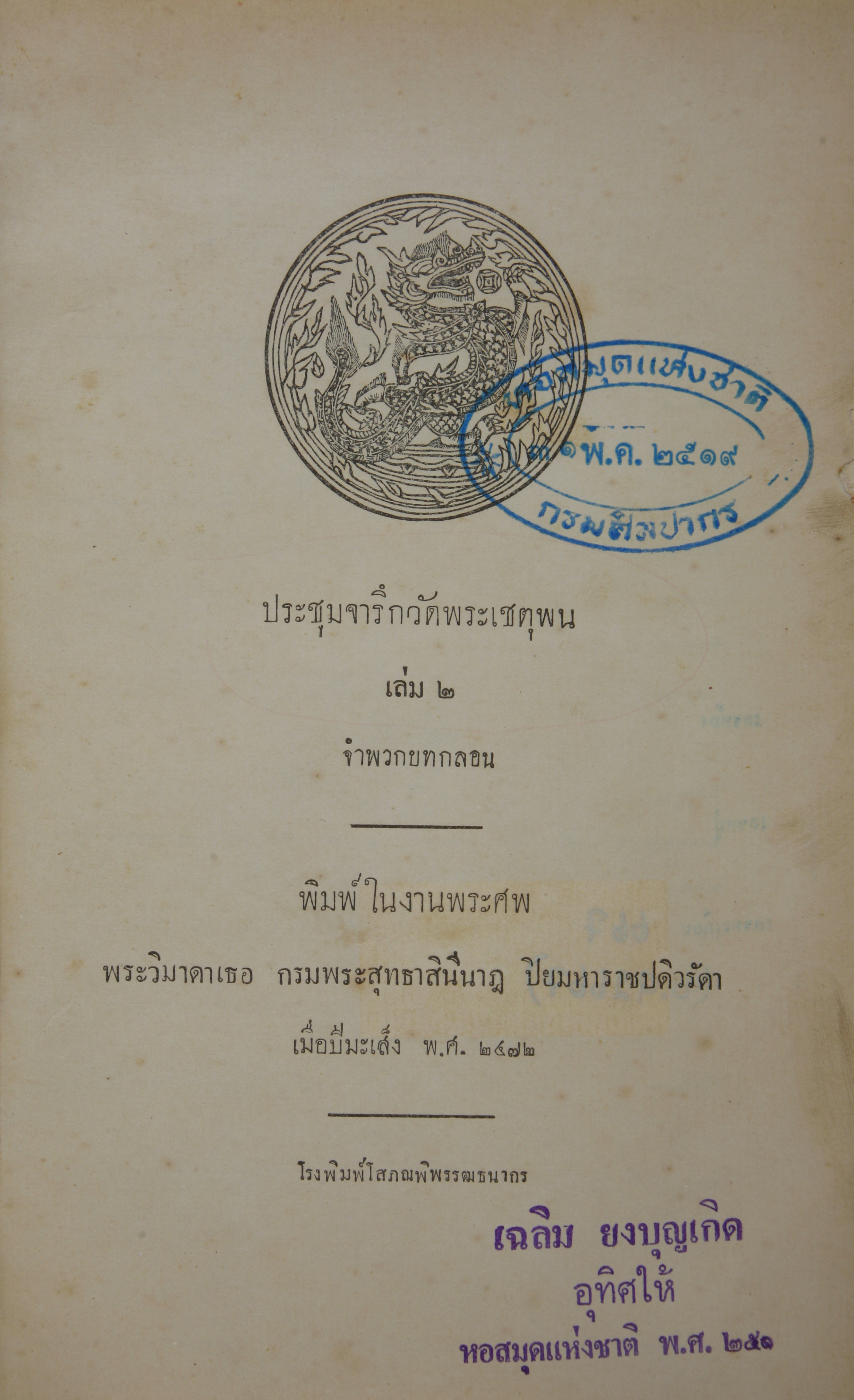 ราชบัณฑิตยสภา, “ประชุมจารึกวัดพระเชตุพน เล่ม 2 จำพวกบทกลอน,” D-Library | National Library of Thailand, accessed April 2, 2026, http://164.115.27.97/digital2024/items/show/5940.