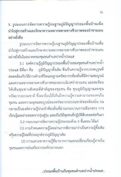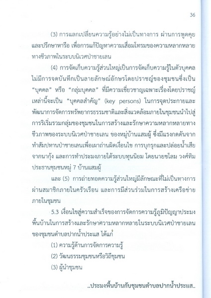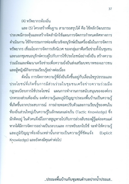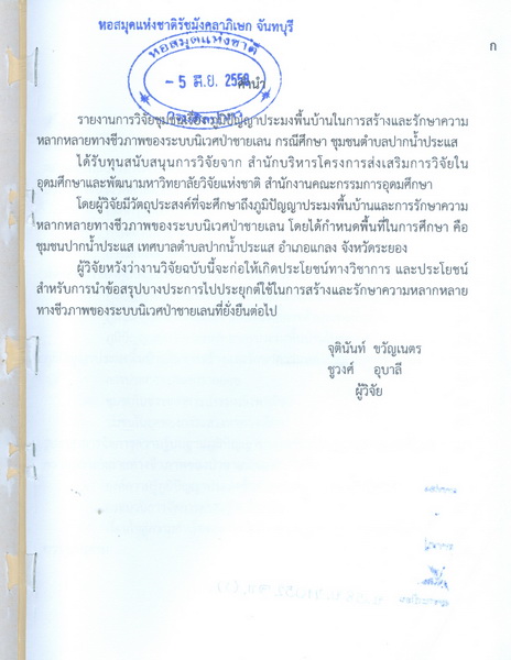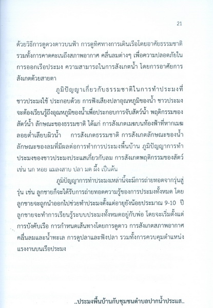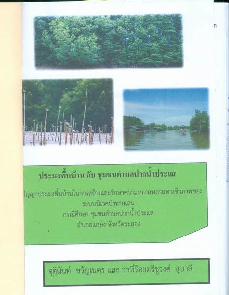 - เป็นรายงานการวิจัยชุมชน เรื่อง ภูมิปัญญาประมงพื้นบ้านในโครงการและรักษาความหลากหลายทางชีวภาพของระบบนิเวศป่าชายเลน กรรีศึกษาชุมชนตำบลปากน้ำประแส