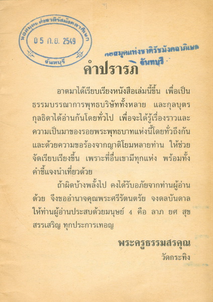 - หนังสือเล่มนี้ทำขึ้น เพื่อจะได้รู้เรื่องราวและความเป็นมาของรอยพระพุทธบาท แห่งนี้