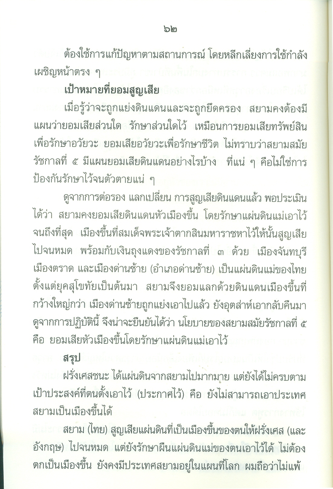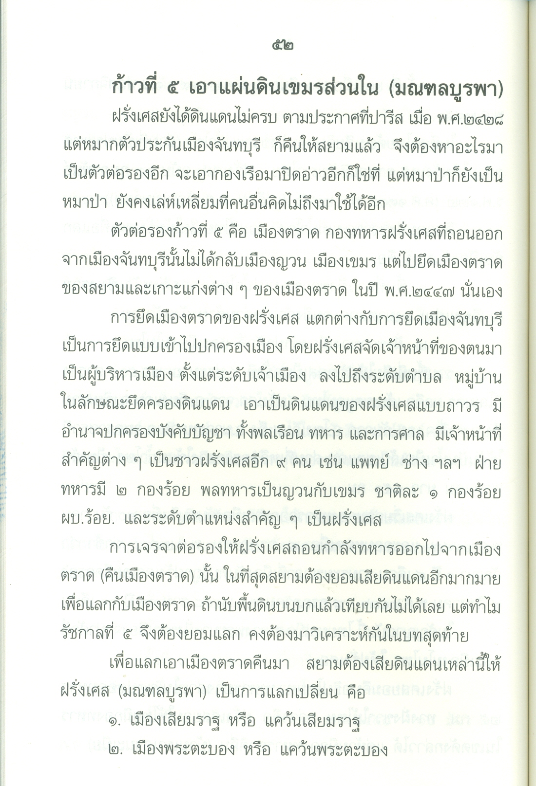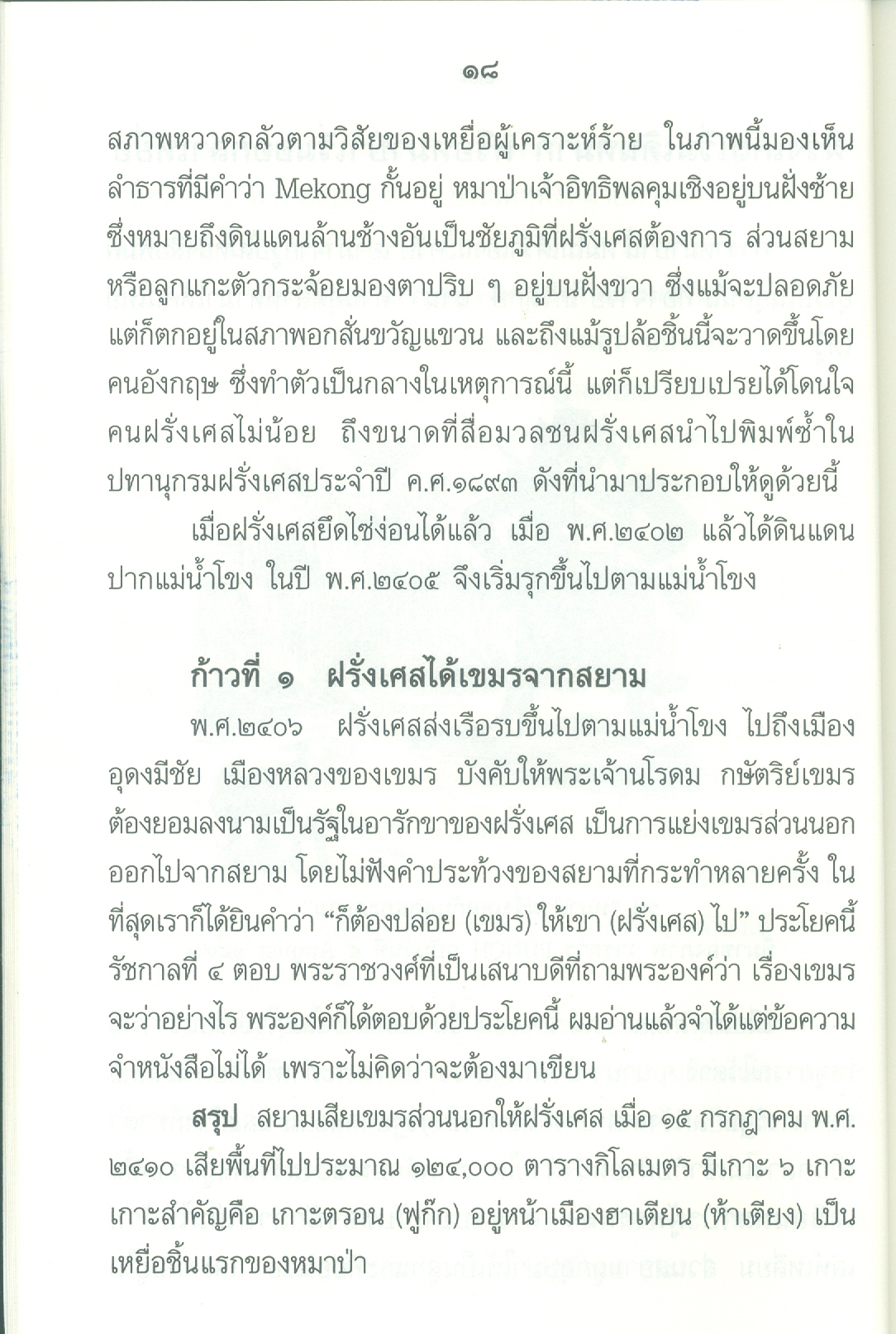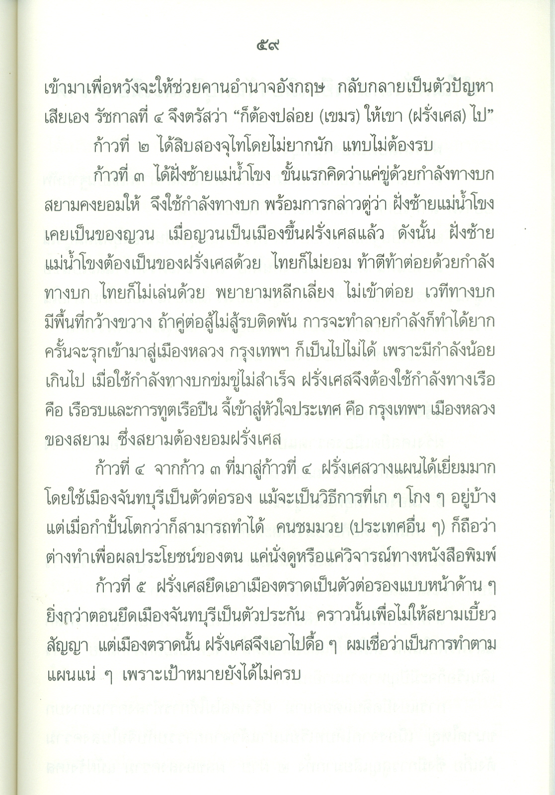 - เนื้อหาประกอบด้วย คำนำ ปูพื้นฐาน เอเชียตะวันออกเฉียงใต้ก่อนฝรั่งเศสเข้ามาในราชอาณาจักรไทยสมัยพุทธศตวรรษที่24 ยุทธศาสตร์ของฝรั่งเศสต่อประเทศสยาม ฝรั่งเศสเริ่มเดินหมาก ก้าวที่1ฝรั่งเศสได้เขมรจากสยาม ก้าวที่2ฝรั่งเศสยึดสิบสองจุไท ก้าวที่3ฝรั่งเศสยึดฝั่งซ้ายแม่น้ำโขงฯ ฝรั่งเศสปิดอ่าวไทย ก้าวที่4ฝรั่งเศสแลกเมืองจันทบุรี ก้าวที่5เอาเขมรส่วนใน บทสรุปใครแพ้-ชนะ .