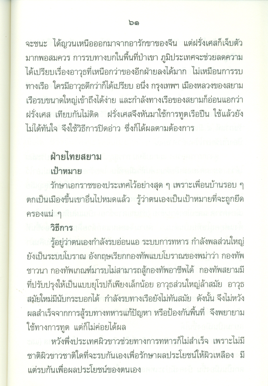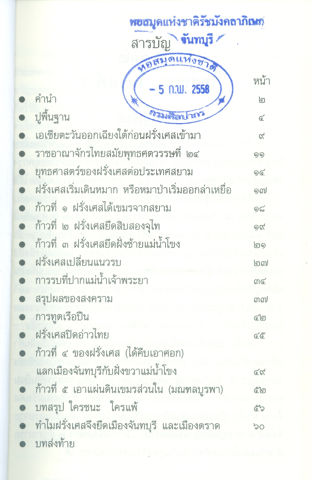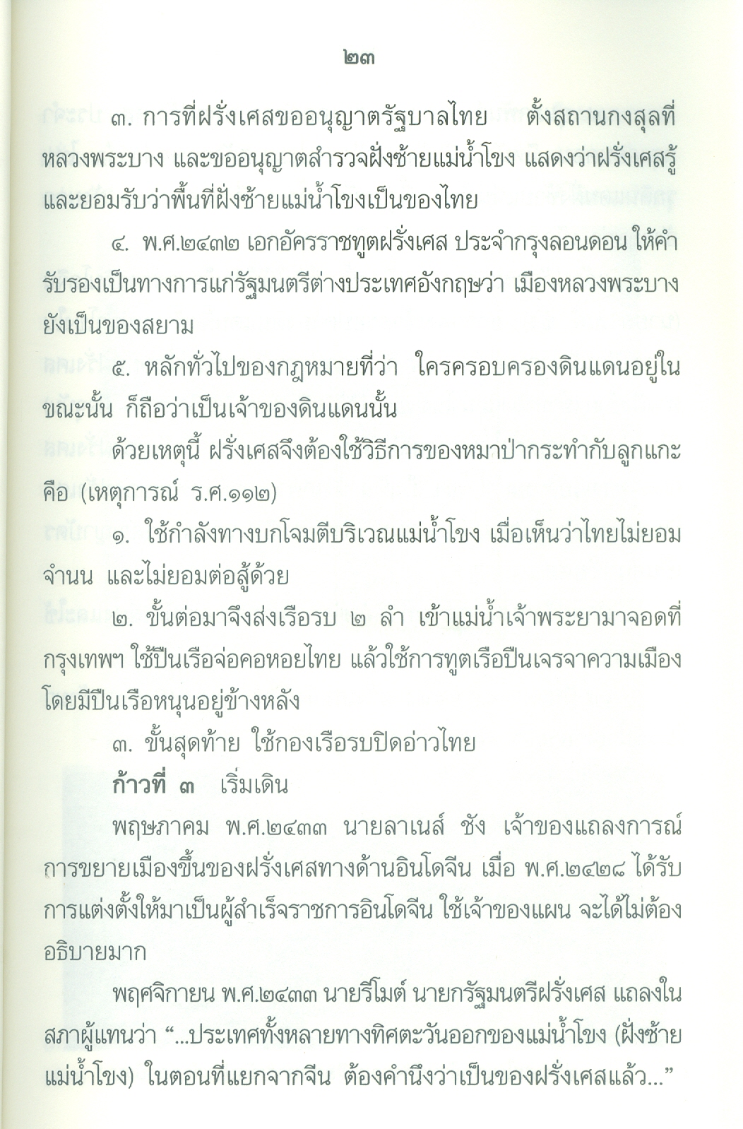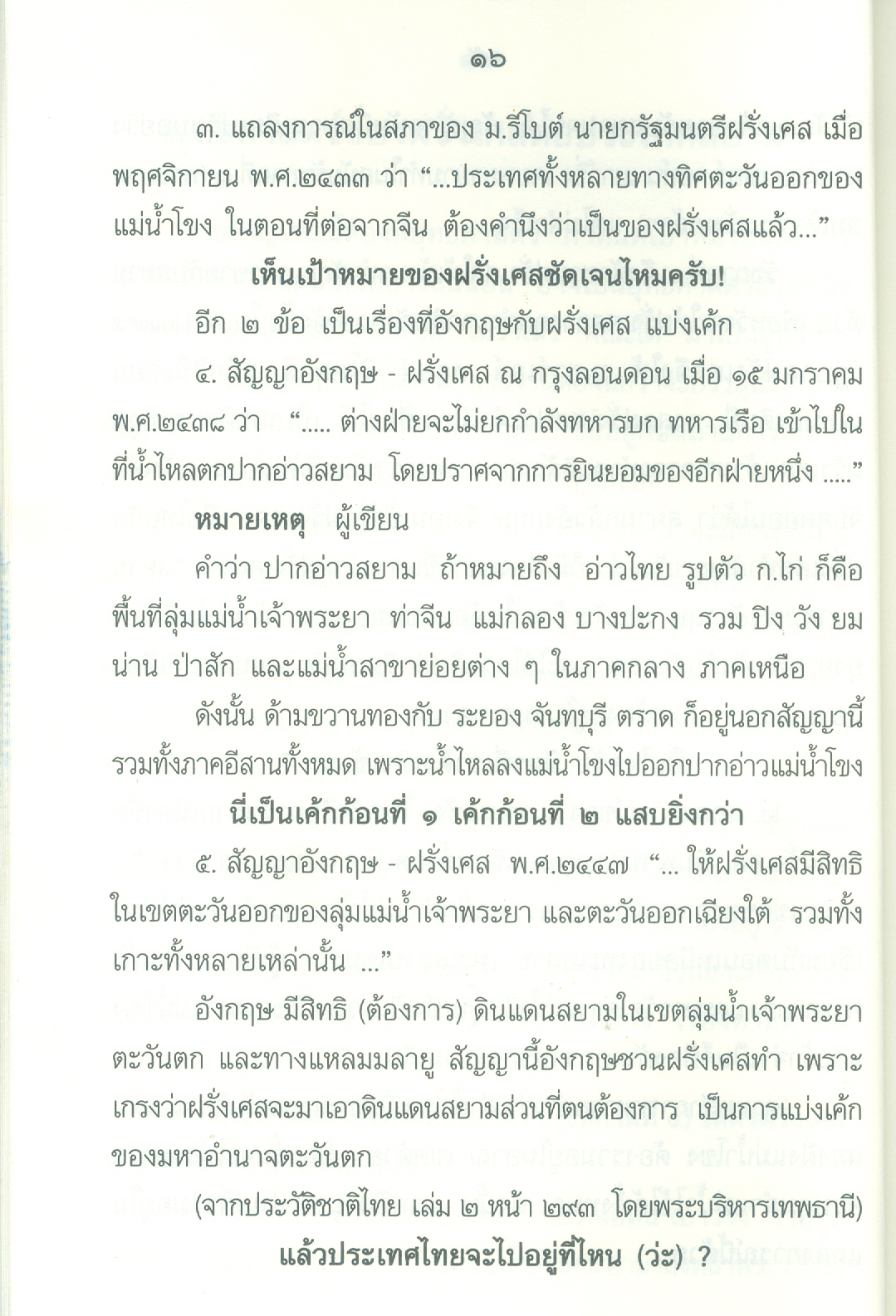 - เนื้อหาประกอบด้วย คำนำ ปูพื้นฐาน เอเชียตะวันออกเฉียงใต้ก่อนฝรั่งเศสเข้ามาในราชอาณาจักรไทยสมัยพุทธศตวรรษที่24 ยุทธศาสตร์ของฝรั่งเศสต่อประเทศสยาม ฝรั่งเศสเริ่มเดินหมาก ก้าวที่1ฝรั่งเศสได้เขมรจากสยาม ก้าวที่2ฝรั่งเศสยึดสิบสองจุไท ก้าวที่3ฝรั่งเศสยึดฝั่งซ้ายแม่น้ำโขงฯ ฝรั่งเศสปิดอ่าวไทย ก้าวที่4ฝรั่งเศสแลกเมืองจันทบุรี ก้าวที่5เอาเขมรส่วนใน บทสรุปใครแพ้-ชนะ .