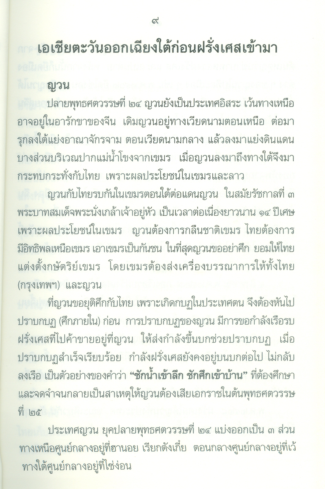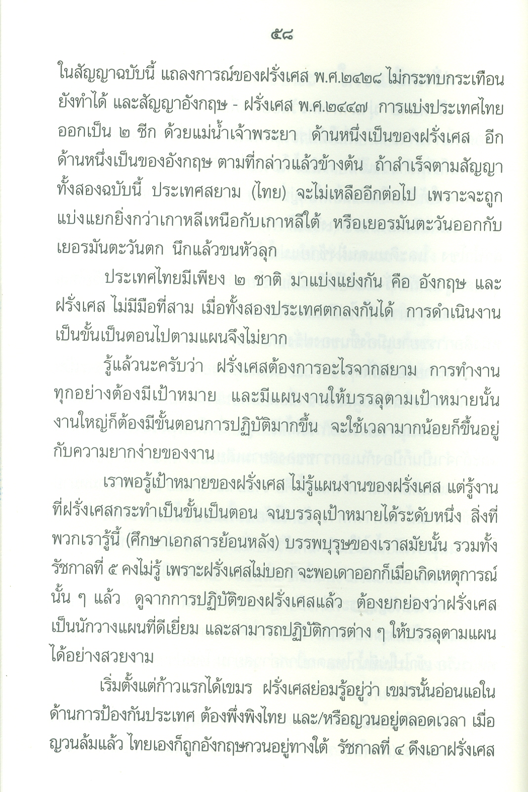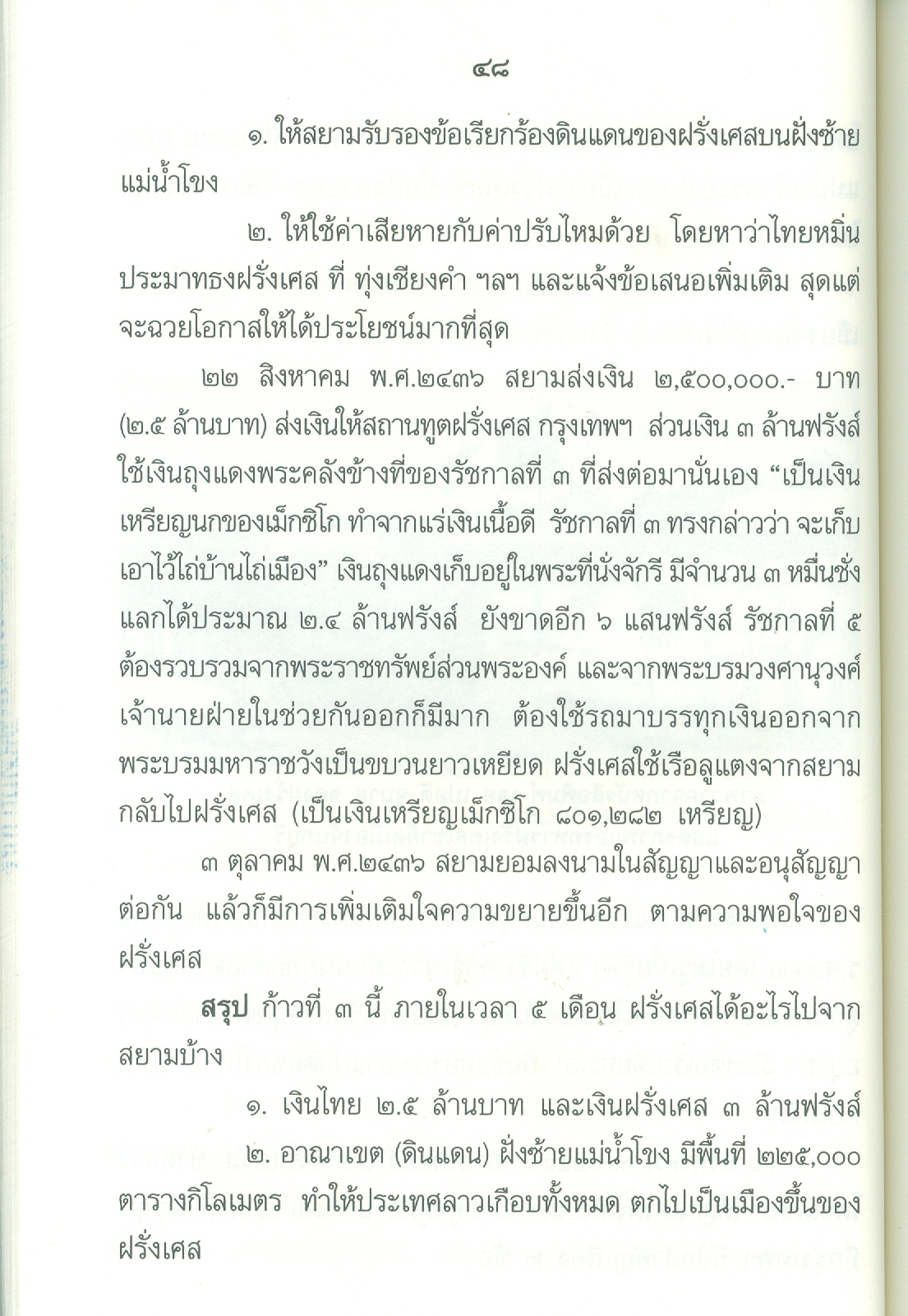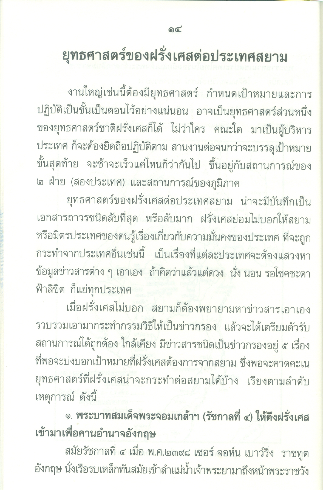 - เนื้อหาประกอบด้วย คำนำ ปูพื้นฐาน เอเชียตะวันออกเฉียงใต้ก่อนฝรั่งเศสเข้ามาในราชอาณาจักรไทยสมัยพุทธศตวรรษที่24 ยุทธศาสตร์ของฝรั่งเศสต่อประเทศสยาม ฝรั่งเศสเริ่มเดินหมาก ก้าวที่1ฝรั่งเศสได้เขมรจากสยาม ก้าวที่2ฝรั่งเศสยึดสิบสองจุไท ก้าวที่3ฝรั่งเศสยึดฝั่งซ้ายแม่น้ำโขงฯ ฝรั่งเศสปิดอ่าวไทย ก้าวที่4ฝรั่งเศสแลกเมืองจันทบุรี ก้าวที่5เอาเขมรส่วนใน บทสรุปใครแพ้-ชนะ .