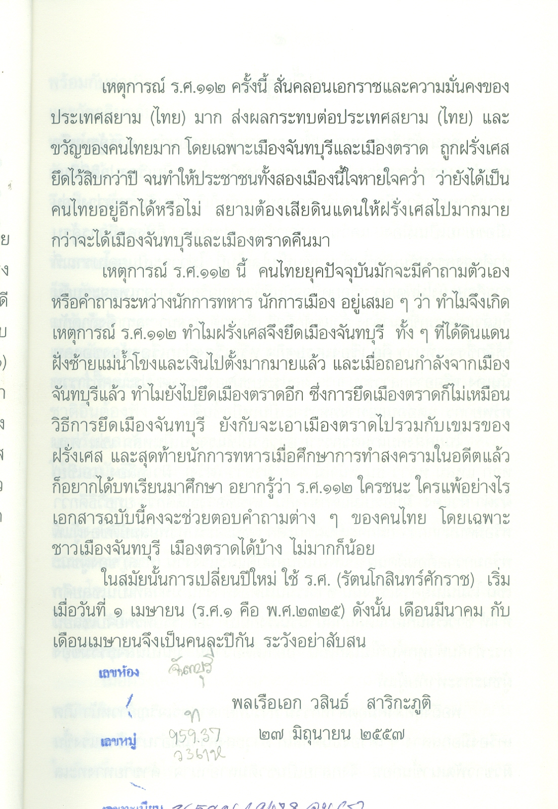 พลเรือเอก วสินธ์ สาริกะภูติ, “เหตุการณ์ ร.ศ112,” D-Library | National Library of Thailand, accessed April 2, 2026, http://164.115.27.97/digital2024/items/show/6126.