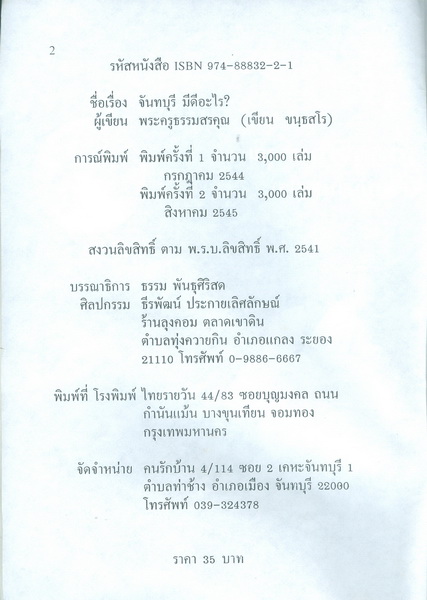 - เป็นหนังสือแนะนำการท่องเที่ยวจันทบุรี แนะนำของดีเมืองจันทบุรีในอดีตและปัจจุบัน
