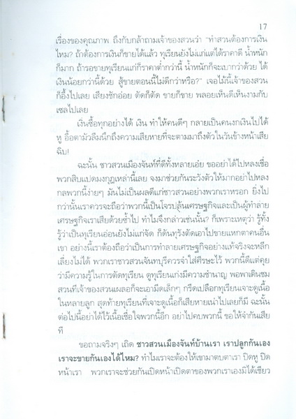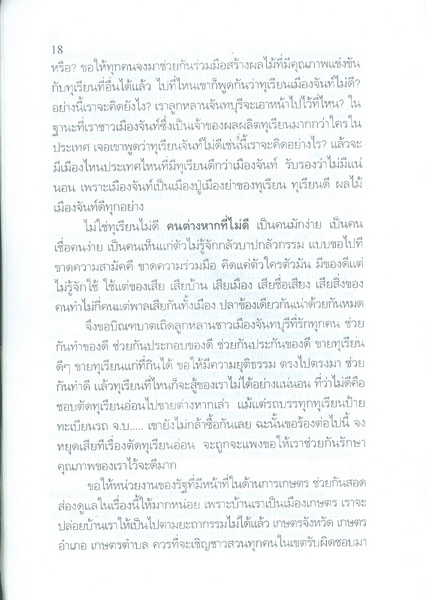 - เนื้อหาประกอบด้วย คำนำมุนมองของผู้เขียน จันทบุรีมีดีอะไร แนะนำแหล่งท่องเที่ยวต่างๆ เทคนิคการซื้อขายผลไม้ พระบรมราชานุสาวรีย์สมเด็จพระเจ้าตากสินมหาราช และประวัติพระครูธรรมสรคุณ.